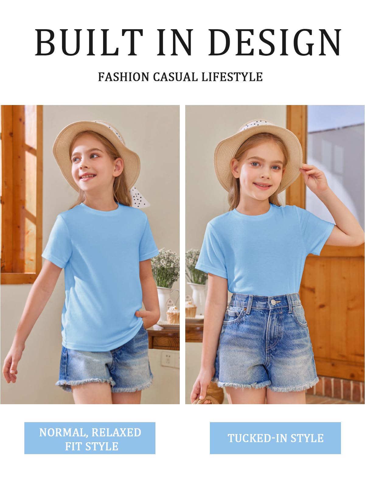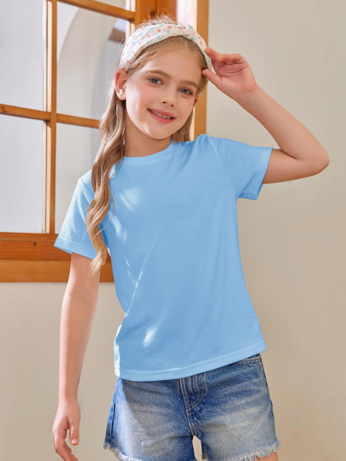 Design: Girls summer t-shirt, casual solid color tee tops, classic round neck and regular length, ,it's a good choice for slim kids.The loose fit provides a comfortable fit for ease of wear and movement. Don't worry about showing your belly when you play