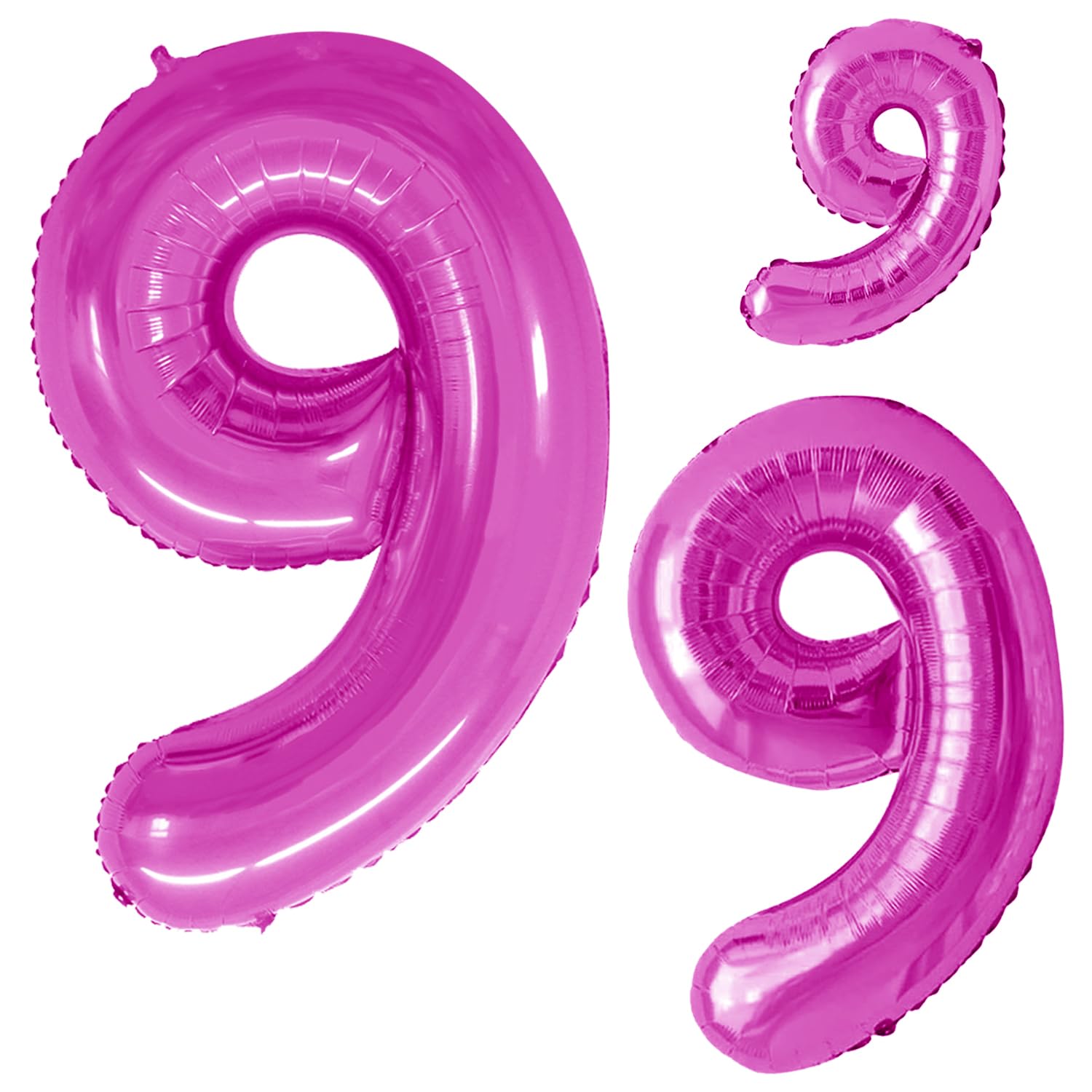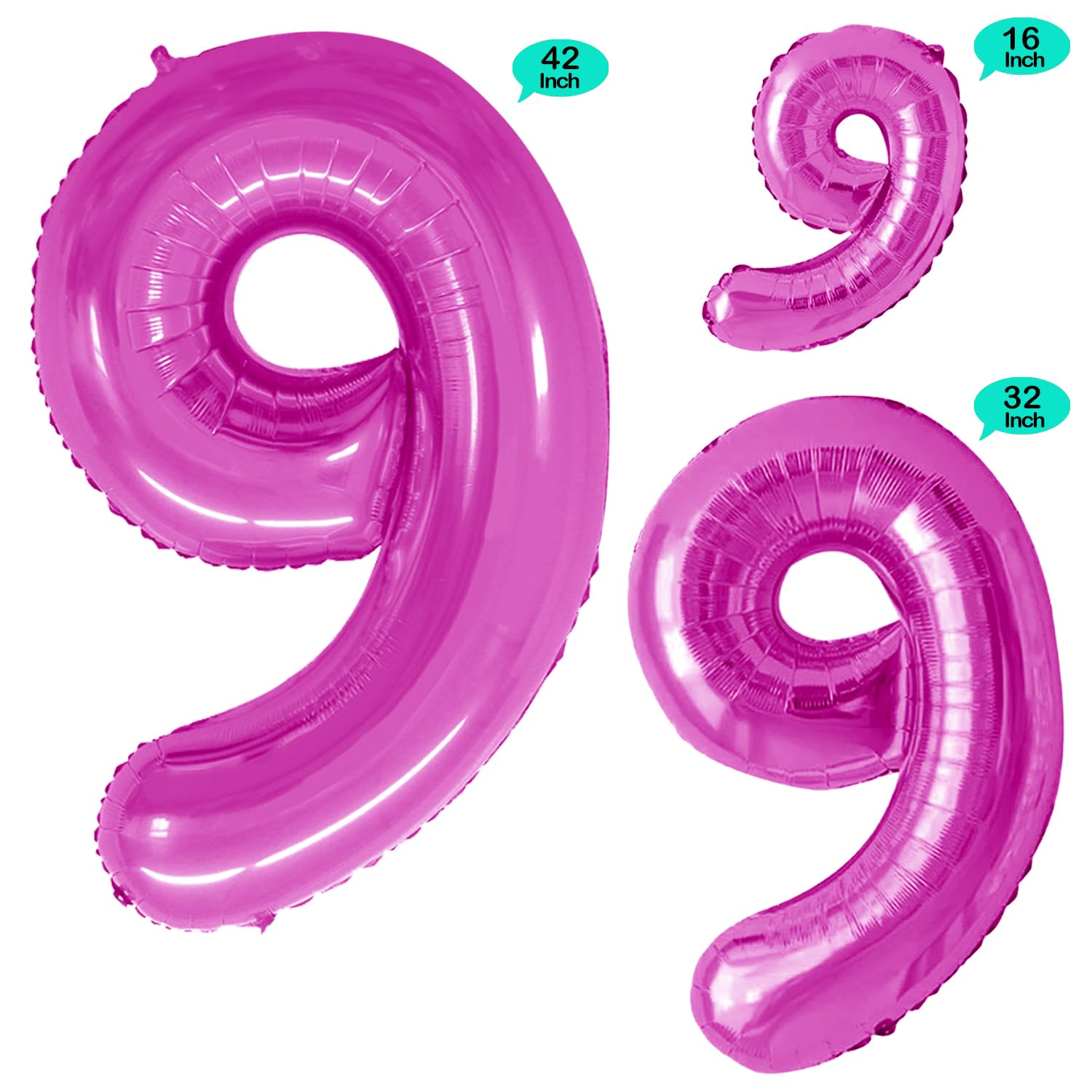 GOER 3pcs pink foil number 9 balloons,great decorations for 9th birthday party,new year or any other anniversary occasions Features: Made of food grade material,safe and non-toxic. Polymer double-layer thickening anti-explosion material.Light and sturdy. Color uniform and beautiful,even can be used as a mirror. Can be reused,use the straw to deflated balloons after party end. Package Includes: 42 inch,32 incn,16 inch Number 9 Balloons,there are 3pcs balloons in total.NOT HELIUM COME WITH THESE BALLOONS Straw*1 How to Use Foil Balloons: Inflate slowly,just fill 90% of the balloons'space that could allows the balloon to expand completely. NOTE:42-inch balloons can float, 32-inch and 16-inch balloons cannot.