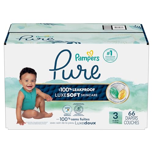 Give your baby the love and care their skin deserves with Pampers Pure, our most premium diaper yet. Pampers Pure is the only diaper with a vitamin-enriched liner that helps protect baby’s skin. Designed with Pampers’ LockAway Core, it stays 2x drier than Honest Diapers, protecting your little one from leaks. Pampers Pure Baby Diapers, from the #1 pediatrician-recommended brand, are made with ingredients you can trust and clinically proven to provide skin protection. They are hypoallergenic and free of elemental chlorine, parabens, latex, and fragrance, providing protection against the 4 main causes of diaper rash: overhydration, friction, increased pH, and mess on skin. Plus, you can complement their diapers with Pampers Pure Baby Wipes for an even better changing experience. Pampers Pure Disposable Diapers come in all the sizes your baby needs at every stage—from newborn to sizes 1–7. Just size by weight to find your baby’s perfect fit. Your number one priority is your baby’s well-being; ours is giving you the best solution so you can focus on loving them. Pampers Pure Baby Diapers come in the following sizes: Newborn (up to 10 lbs.) size 1 (8–14 lbs.), size 2 (12–18 lbs.), size 3 (16–28 lbs.), size 4 (22–37 lbs.), size 5 (27+ lbs.), size 6 (35+ lbs.), and size 7 (41+ lbs.).