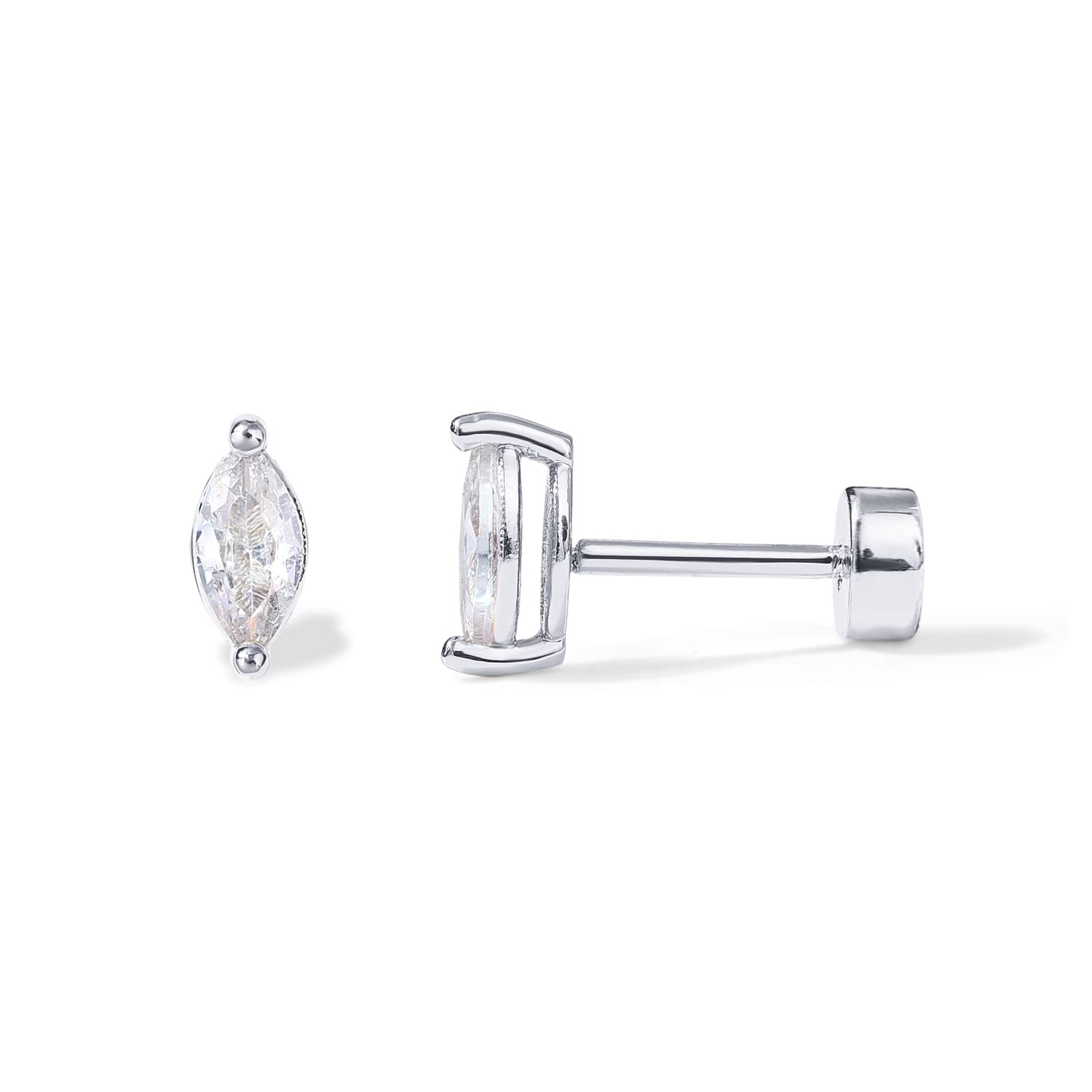 These 5x2mm Marquise CZ Flat Back Earrings are Plated in Rhodium and are perfect to wear all day and all night! Please refer to instructional video for guidance.