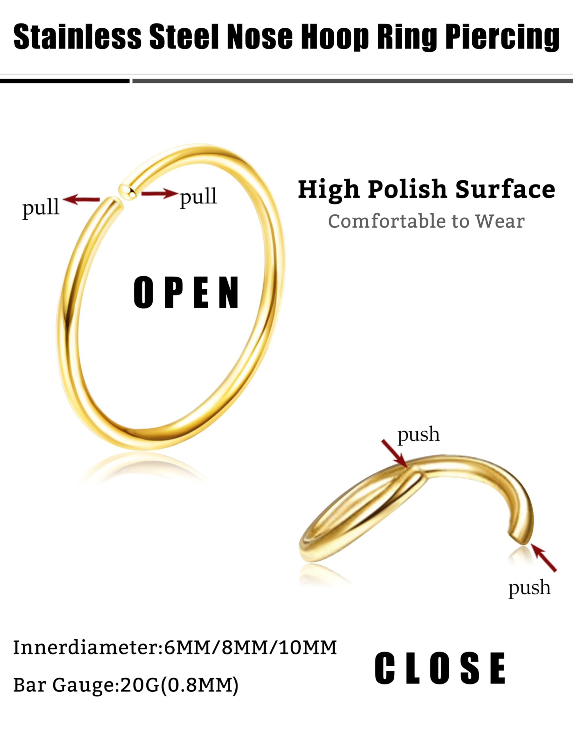 Multiple Uses: Small hoop nose ring can be use as nose jewelry, lip ring, helix earrings, cartilage earring hoops, tragus ear piercing and septum ring. Hoop nose rings for women ,hoop nose rings for men is very suitable for holiday, such as anniversary, graduation, Christmas, Thanksgiving, etc