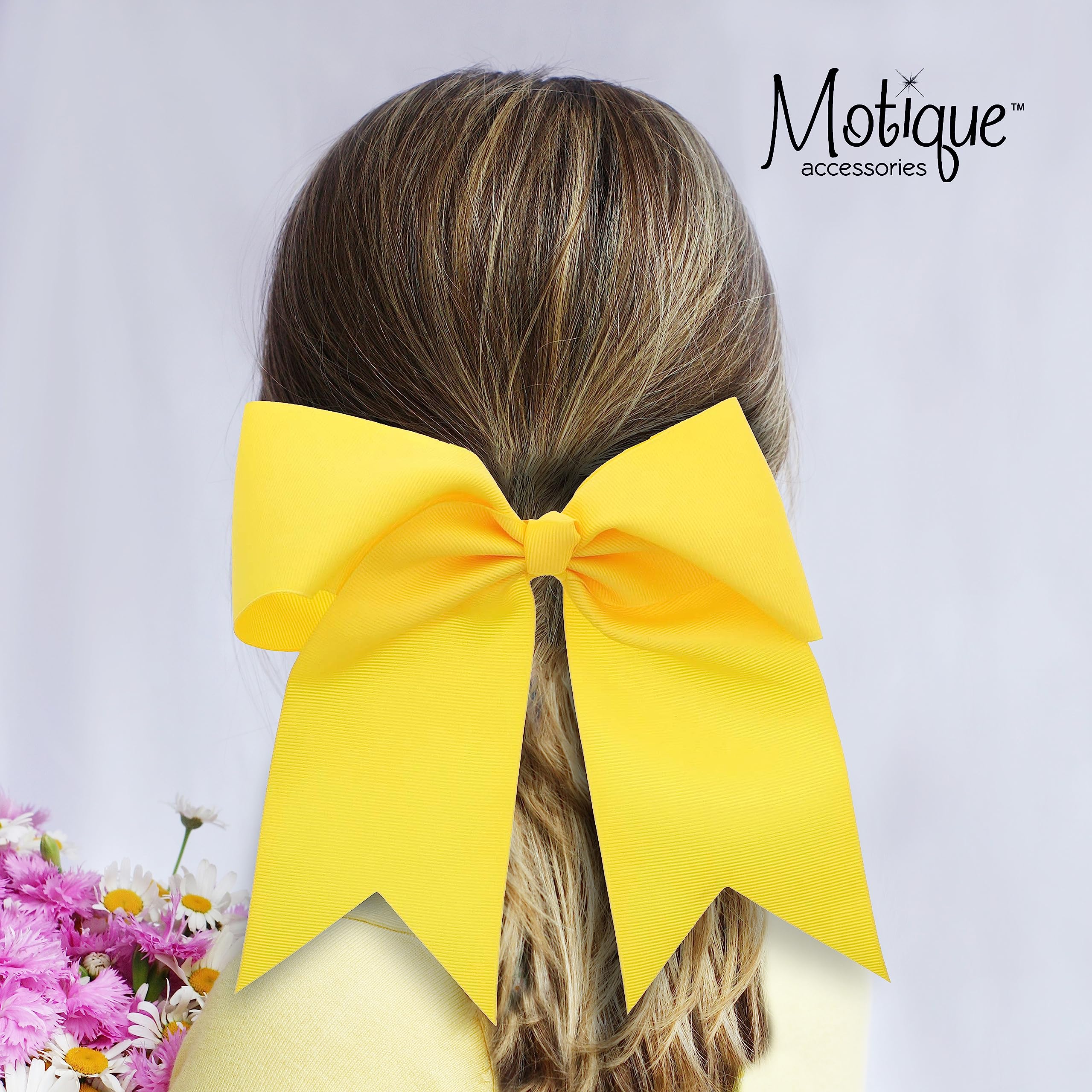 This is a very pretty girls jumbo bow pony with tails. It measures 7 inches wide and 7.5 inches tall from the highest point of the bow until the bottom of the tails. There is a strong elastic hair tie attached to the back. This grosgrain bow will look adorable in your girl's hair! Makes a great stocking stuffer or gift item!