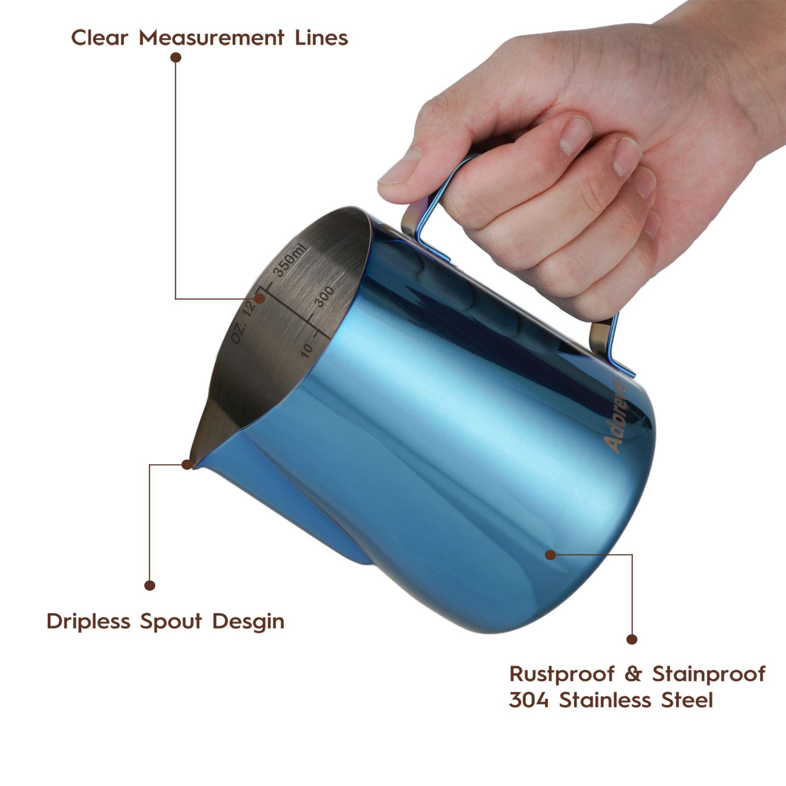 Various Colors For Choose: We have stainless steel/ black/ rainbow/ gold/ rose gold/ blue colors for choose. In Adorever, we can meet your different demands of frothing pitcher.