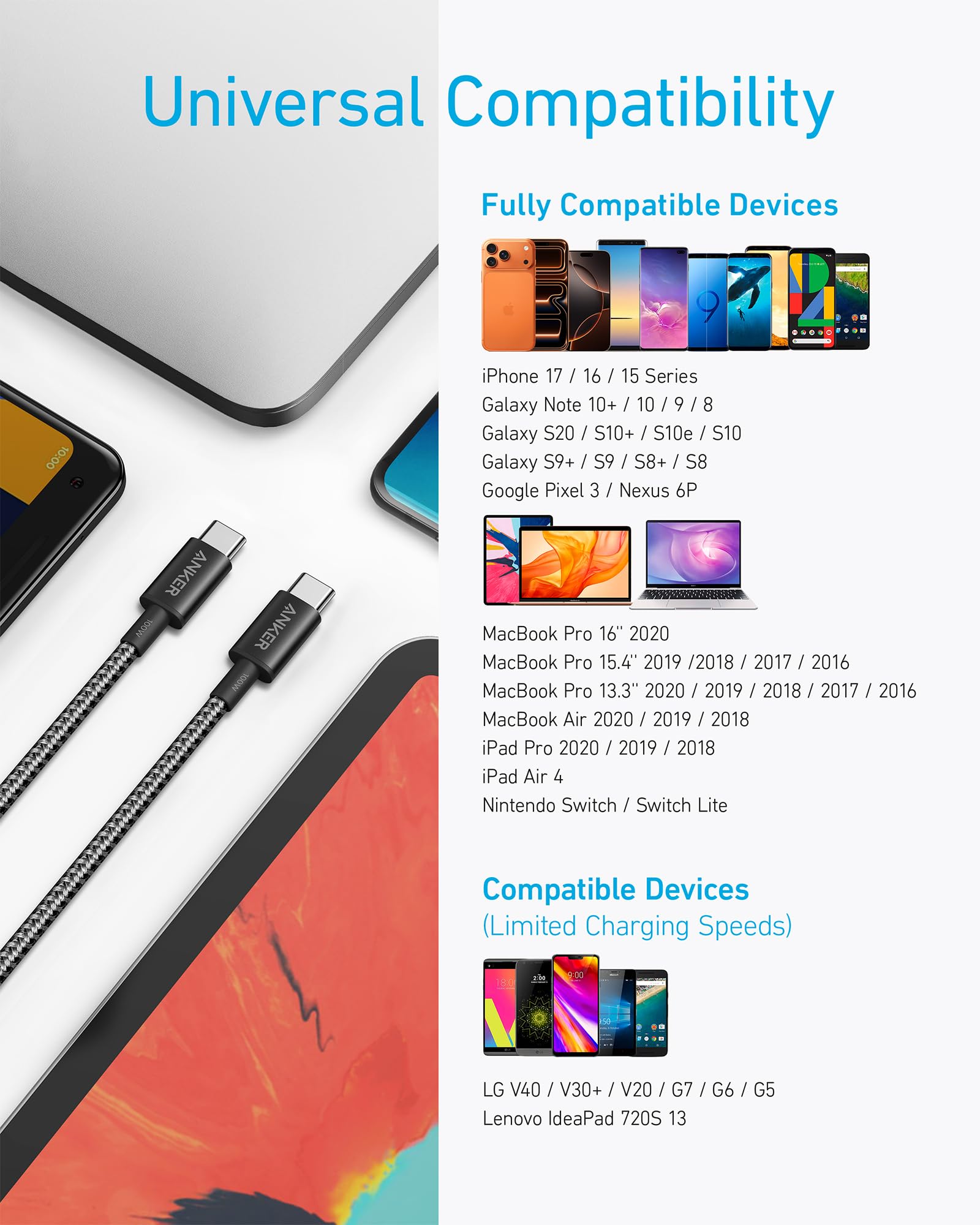 What You Get: New Nylon USB-C to USB-C 100W Cable (10 ft, 2pack), hook and loop cable tie, welcome guide, 18-month warranty, and friendly customer service.