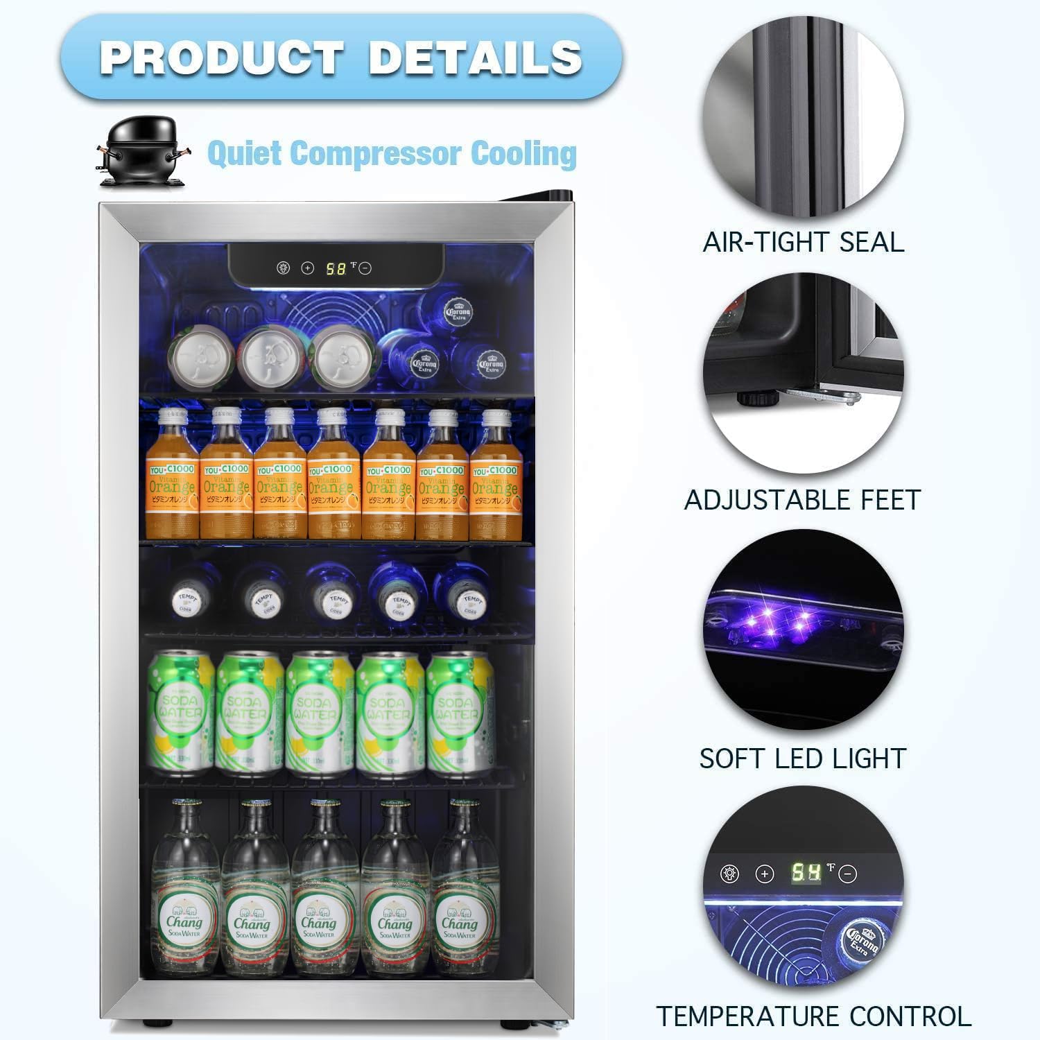 GREAT CAPACITY-3.2 Cu. Ft. capacity holds up about 120 12-oz. cans in this beverage refrigerator. Mini size fit for everywhere, especially, better for your playroom, small kitchen and office.Large digital display for quick monitoring and setting of any temperature. Equipped with automatic lock function. Working temperature range is 40°F- 61°F.