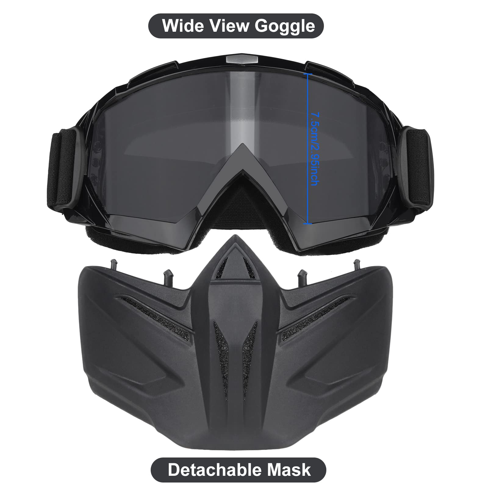 【Detachable Airsoft Goggles】180°broad view clear lenses, detachable goggles fit your other helemet and mask.