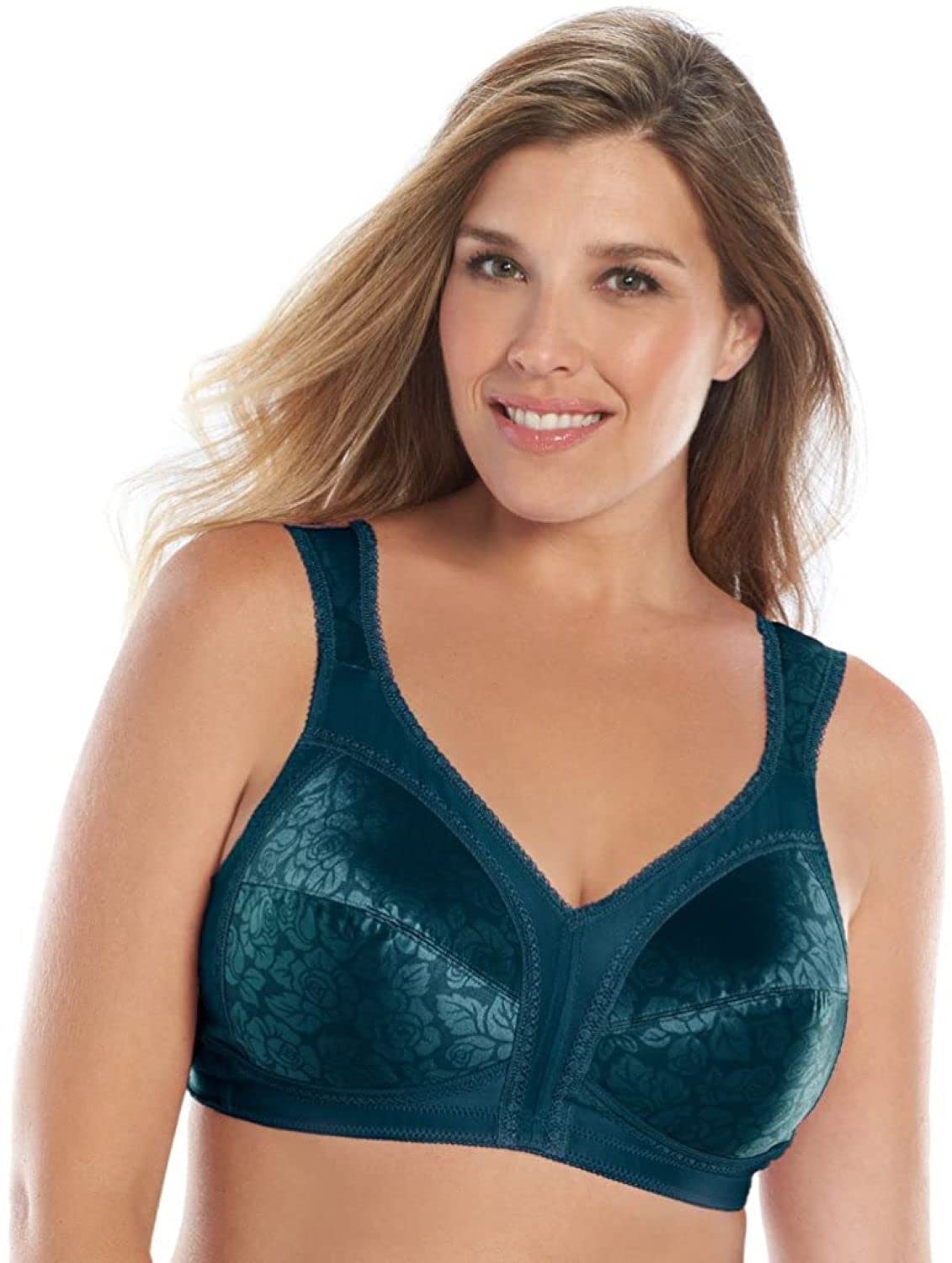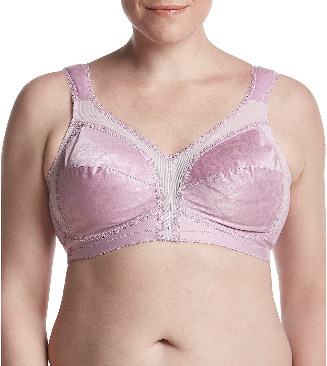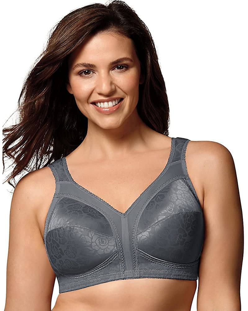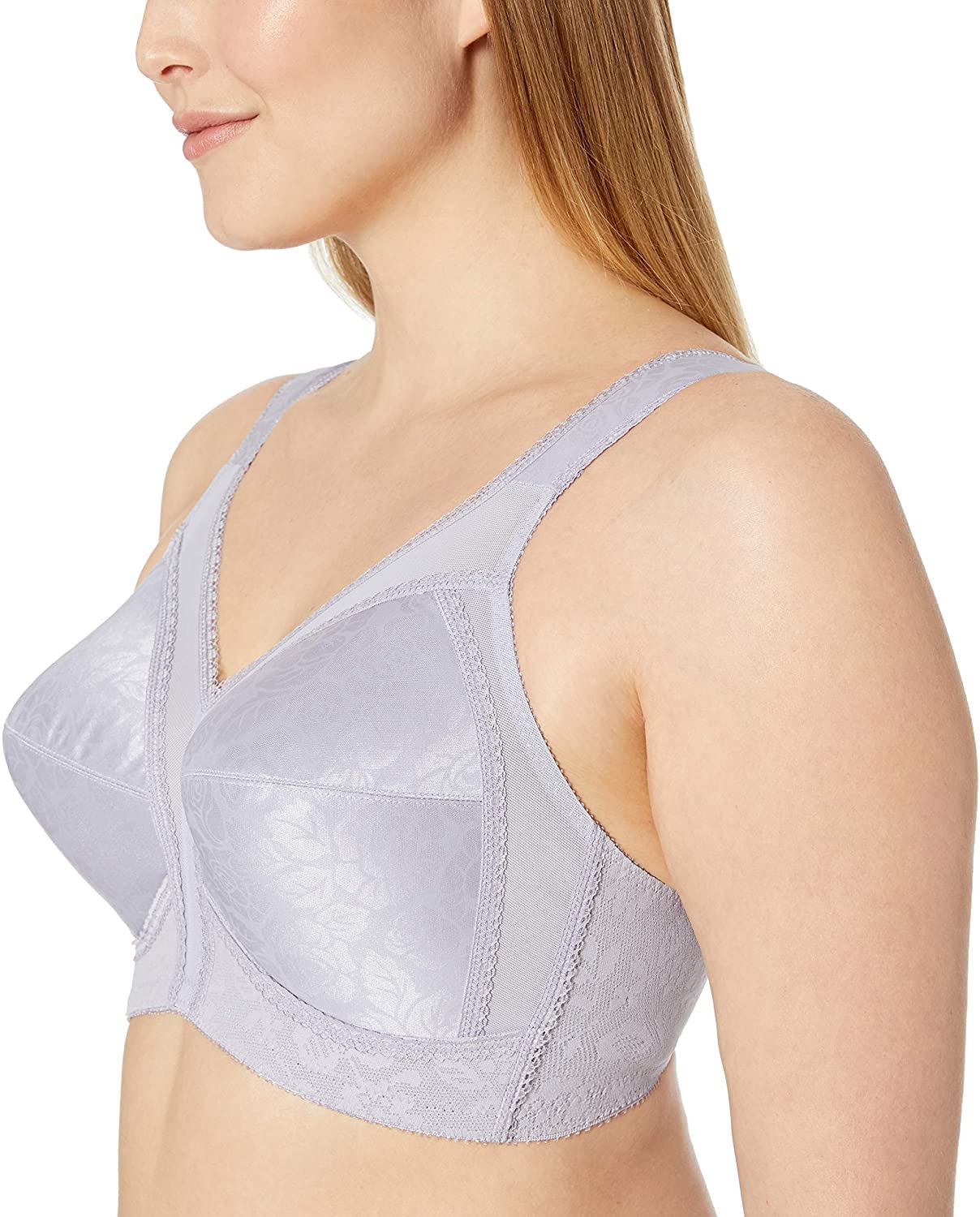 Description One of our customers said it best: "Finally found a bra that fits...great support, very attractive and very comfortable" This wireless bra from Playtex® is part of the famous 18 Hour® collection, a go-to favorite for so many customers who value wirefree comfort but need superb support. This wireless bra is fashioned around the famous Playtex M-frame that comfortably conforms to your shape. With a pretty, satiny floral print, this wireless bra is designed with the Playtex® 4-way TruSUPPORT® system that provides higher sides for bulge control, fuller, softly seamed cups for natural shaping, wider straps for all-day ease, and a smoother back for enhanced stability. The stay-in-place straps play an important role in the comfort of this full-coverage bra, with a wider, cushioned design that helps relieve shoulder pressure for no-dig comfort. And you'll love the Tagless® styling for itch-free comfort. Step up to the superior fit and dreamy comfort of this 18 Hour bra from Playtex.
