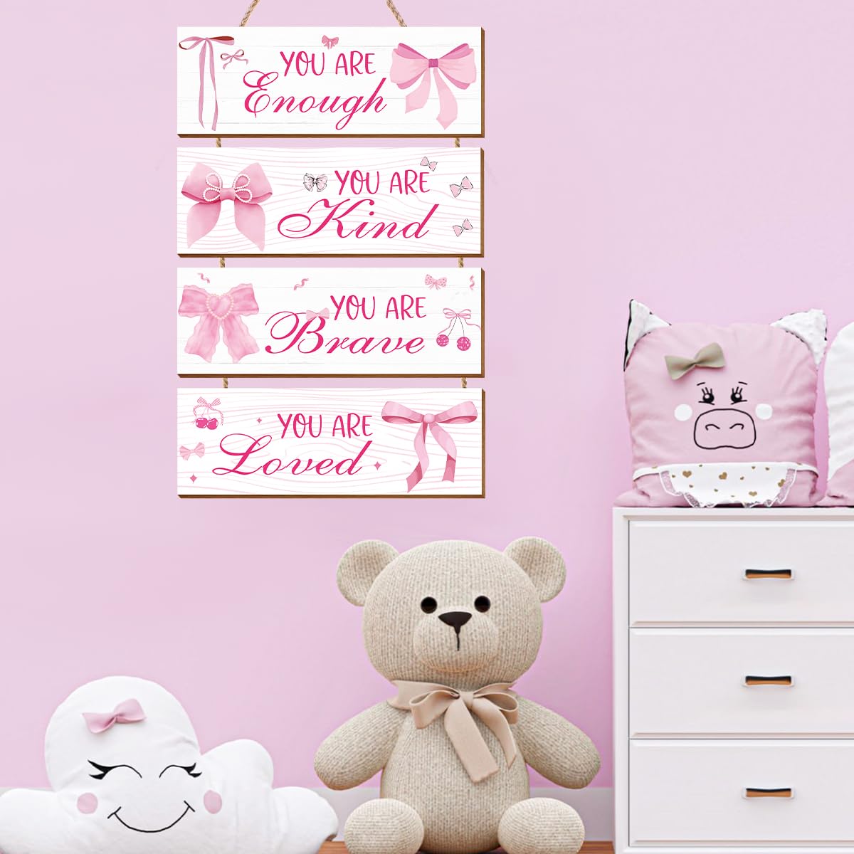 Perfect for Pink Lovers: The lovely pink bows create a feminine touch, making these decorations ideal for any girl who loves soft, stylish accents in her room