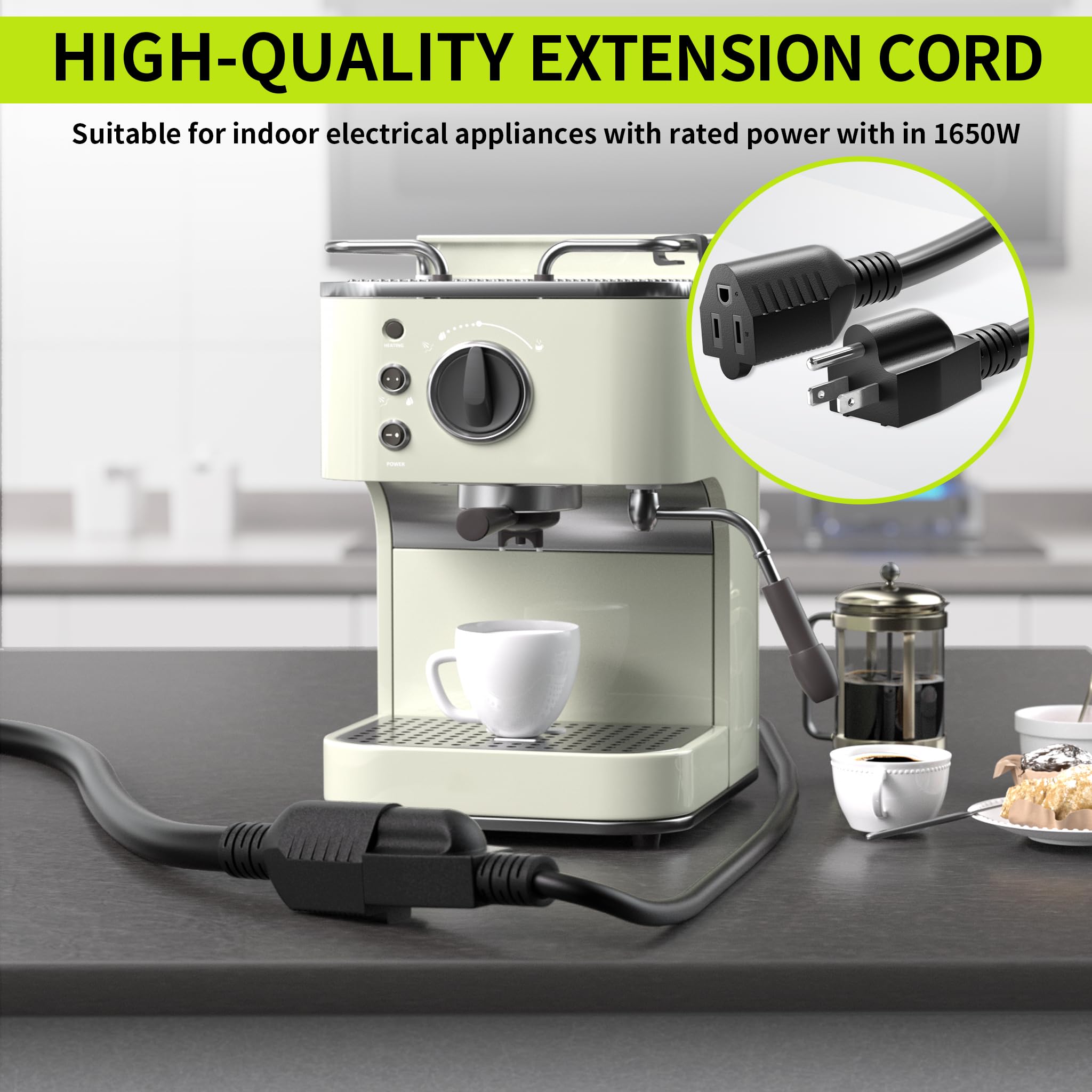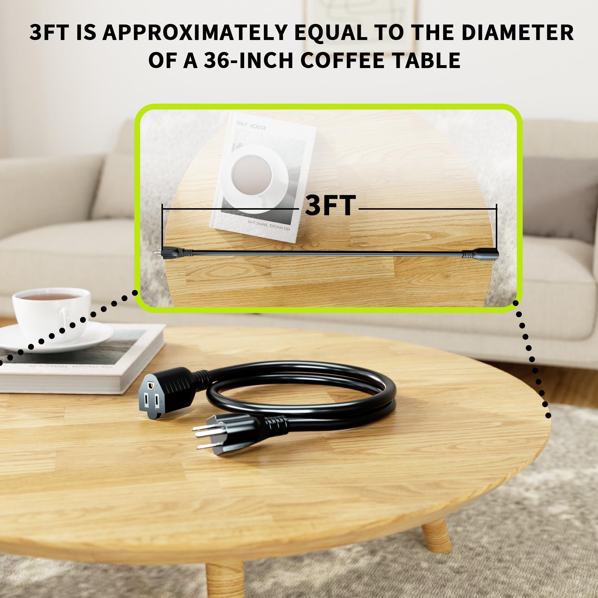 Indoor Applications: Black extension cord 3 feet 2 pack easily meets a variety of power needs in home or office; 2 pack 3 ft extension cord is ideal for devices such as coffee makers, fans, juicers, laptops or televisions; Please note that this extension cord is not suitable for some high-power appliances, such as microwave ovens, electric kettles, electric heaters, hair dryers, etc