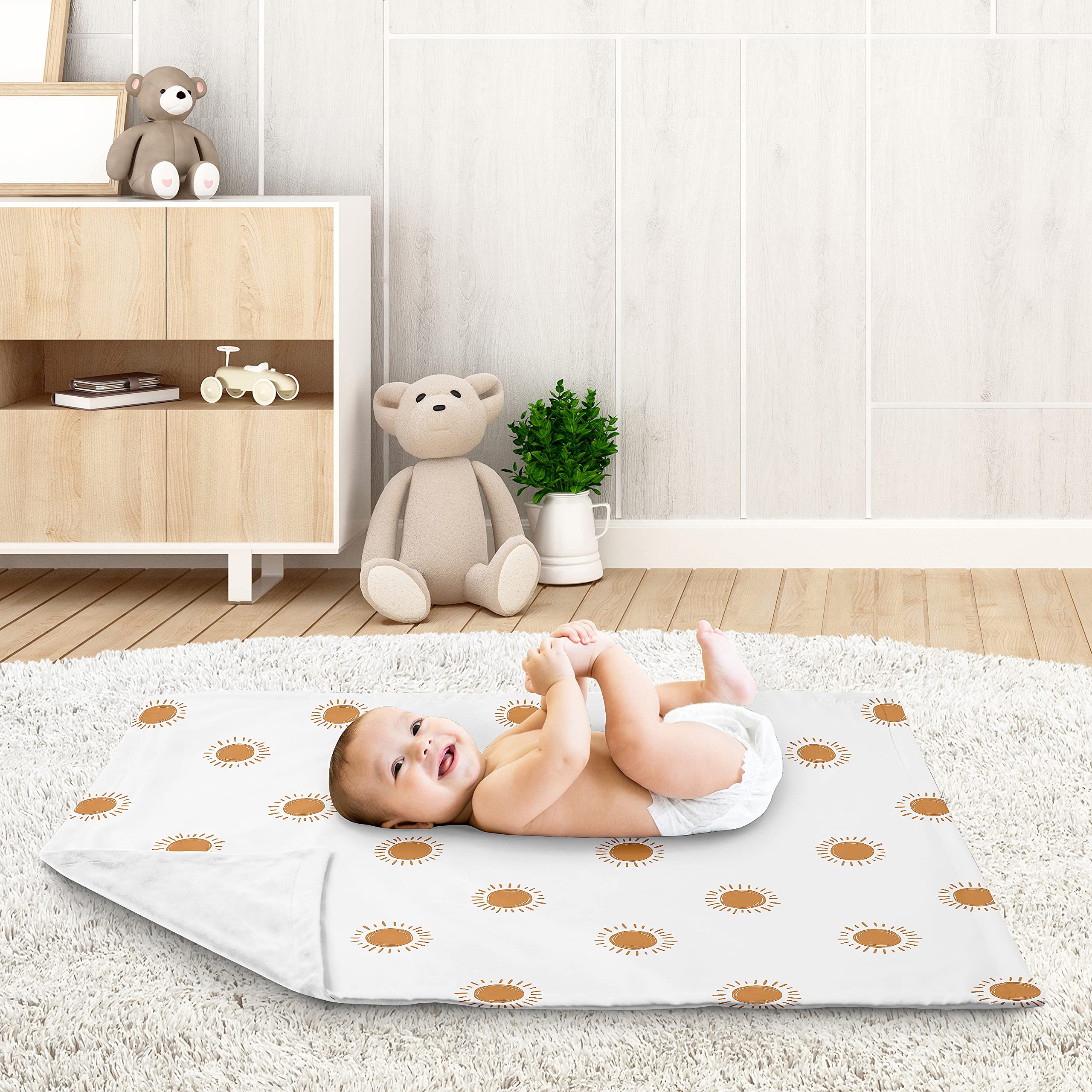 Lightweight blanket is small enough to toss in your bag but large enough to wrap your baby in love