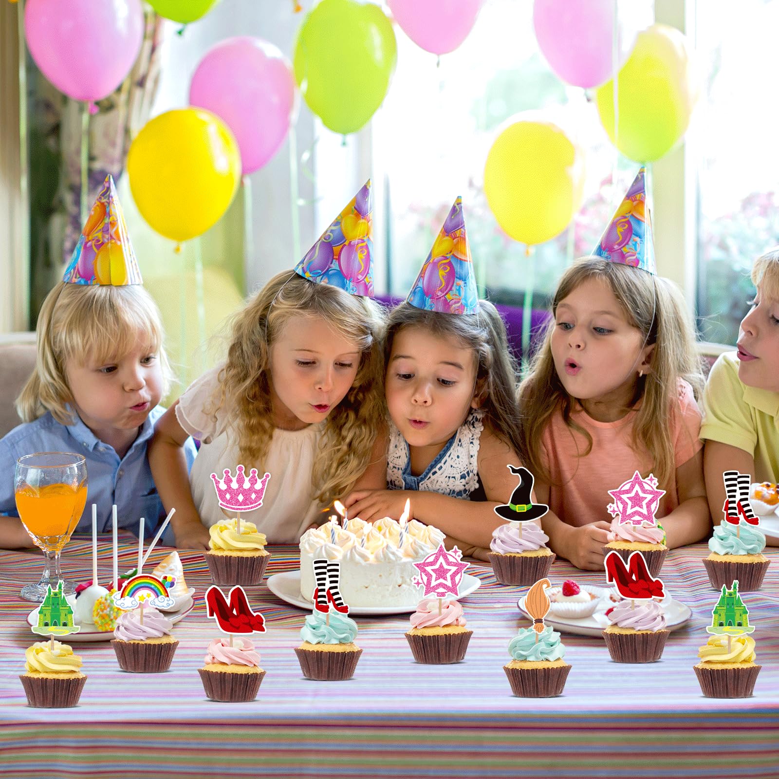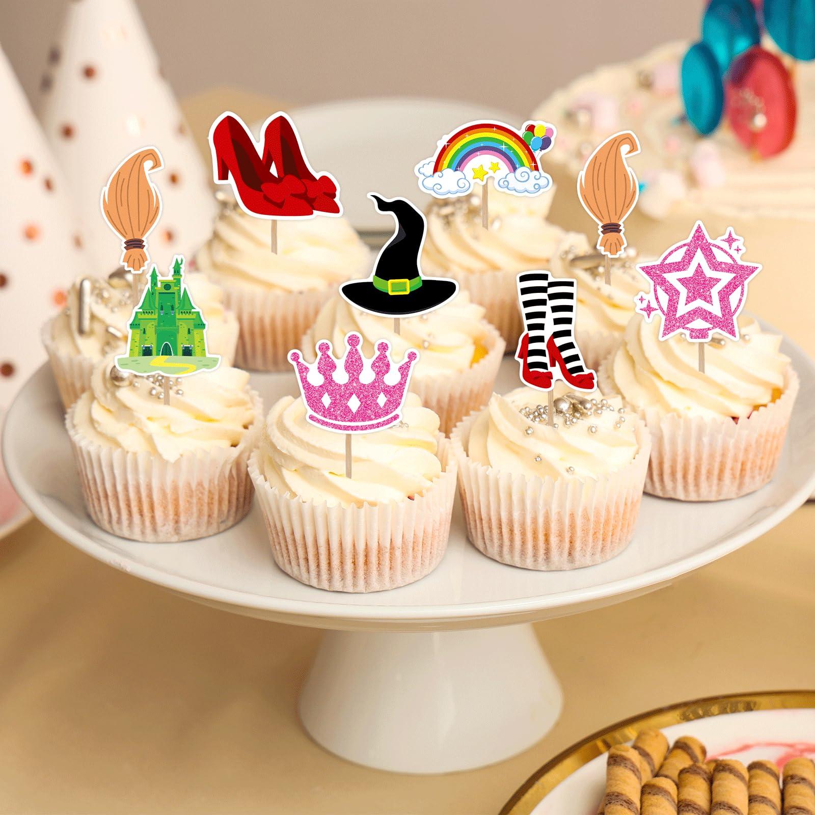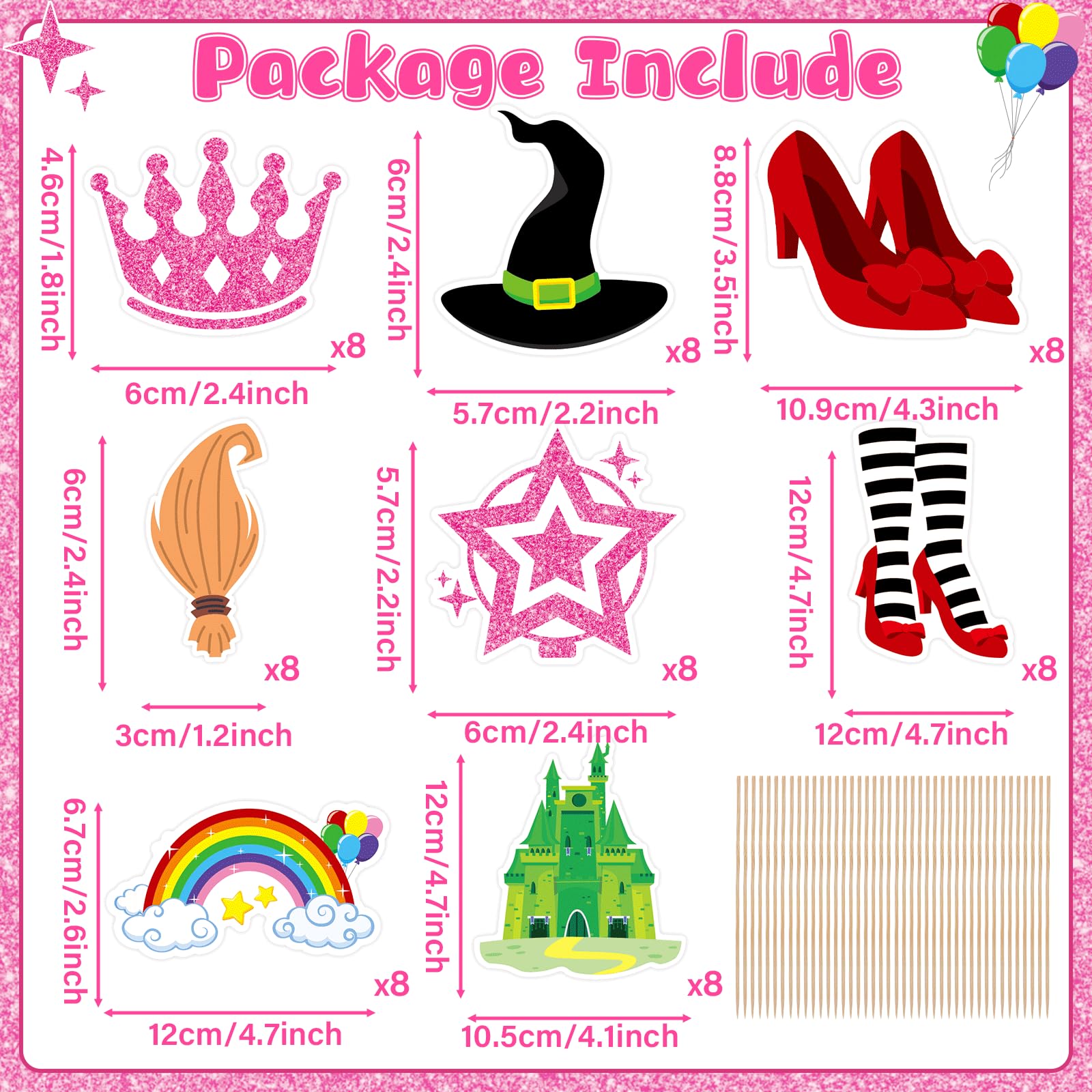 Attractive Design: The pink and green cupcake picks feature classic elements from the iconic witch movie, including a sparkly pink crown, black witch’s hat with a green band, rustic broomstick, and glittery pink starburst. These whimsical designs bring the beloved witch universe to life, making them a fun addition to your party.