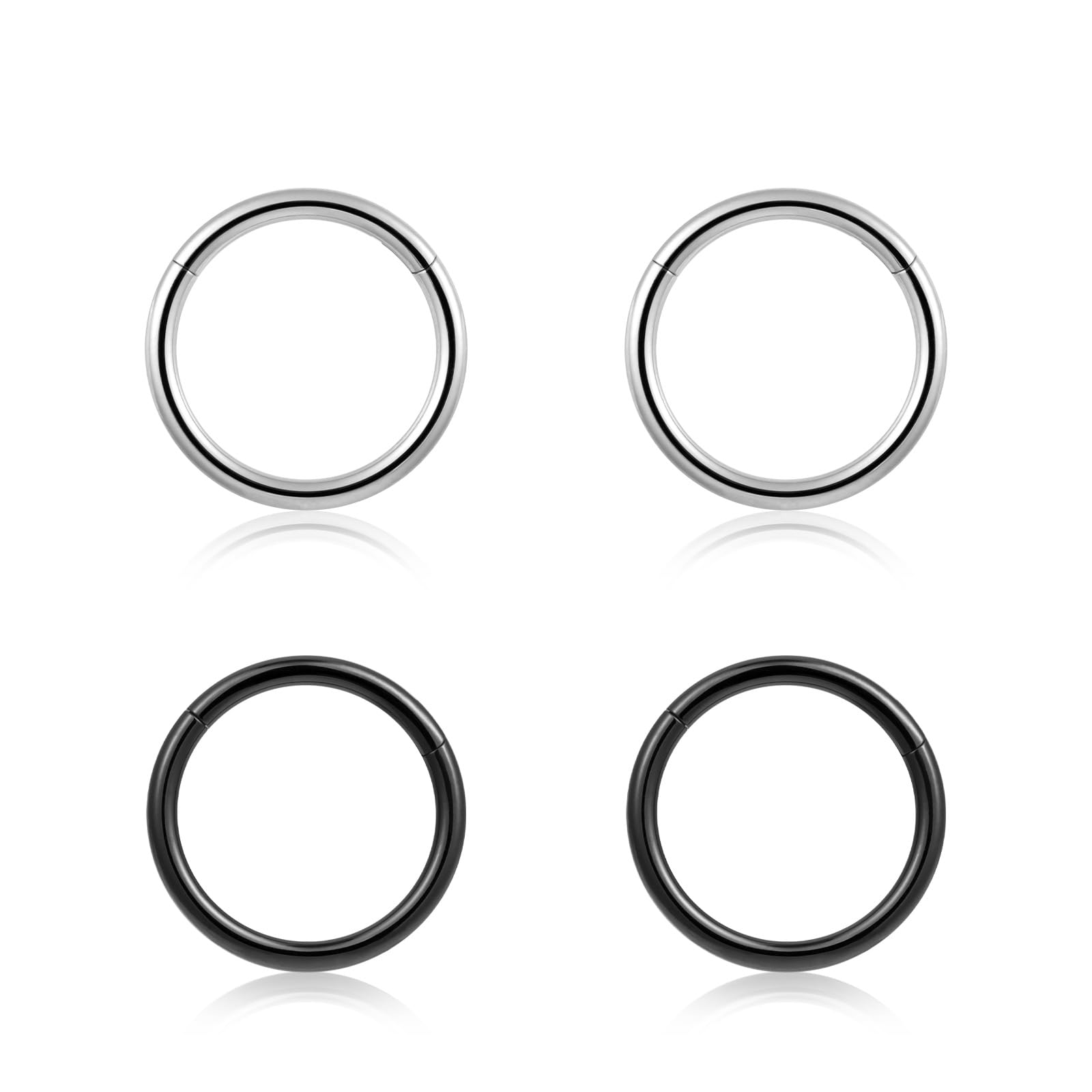 Nose Rings Hoops Combo:18G 8mm 2 Silver & 2 Black.Thickness:16G:1.2mm.18G:1.0mm.20G:0.8mm.Catering to the needs of an exclusive clientele.