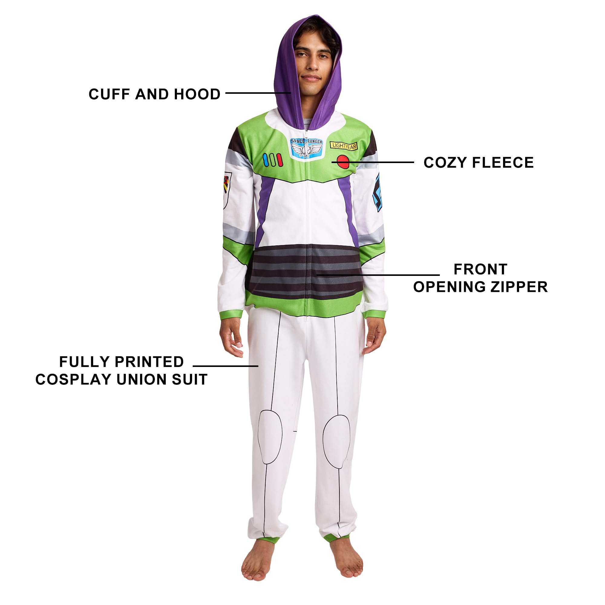 Custom Design: Features Buzz Lightyear’s uniform with detailed prints and a purple hood for a bold space ranger look