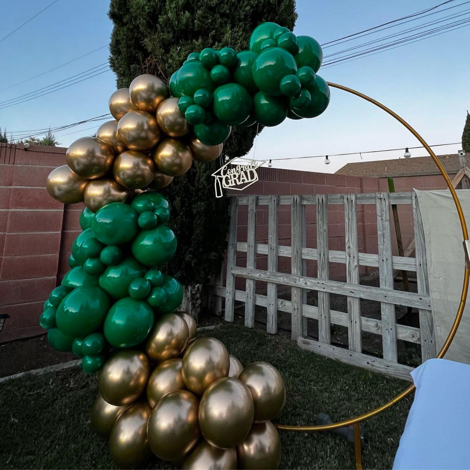 Package Included : Our 12 inch balloons set includes: 25 pcs dark green balloons, 22 pcs white balloons, 4 pcs metallic gold balloons, 3 pcs chrome green double balloons, 3 pcs green confetti balloons, 3 pcs gold confetti balloons and 2 pcs green ribbons.