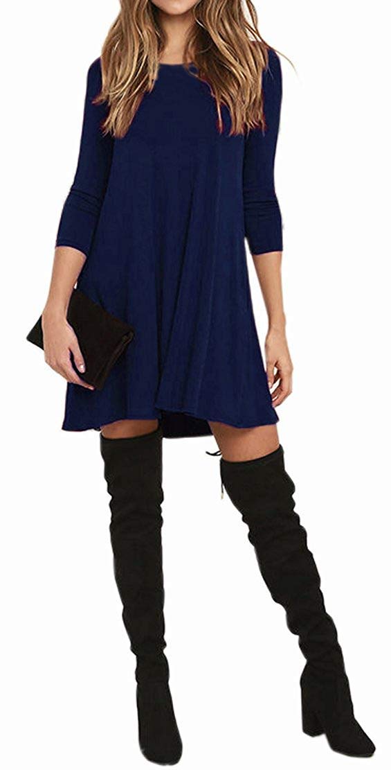 Match:wear this dress to a casual evening out for drinks with friends, doing your hair&make up,to a graduation party, and to beach walking,etc.they’re comfy enough to wear around the house and appropriate for office work.you can dress it up very easily with any combination of cape jewelry,sandals, heels,flip flops or even sneakers.loose t-shirt dress design,put on a belt and paired with a pair of boots will make you looks great.