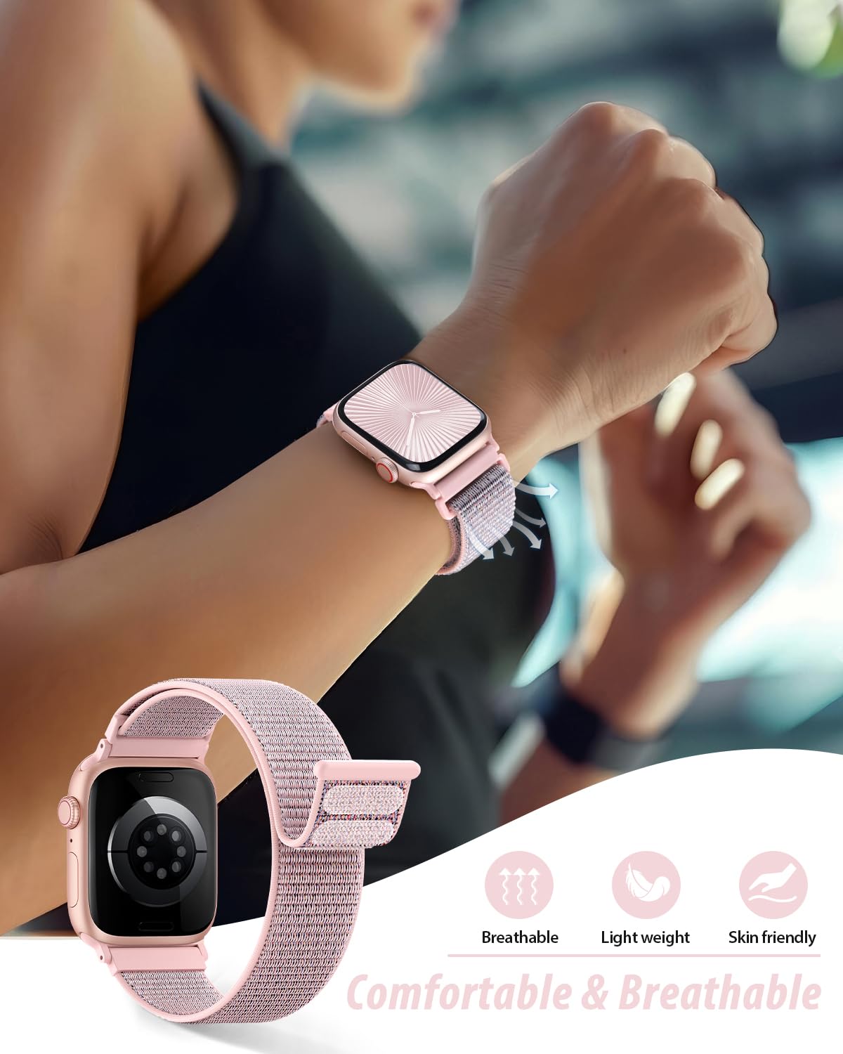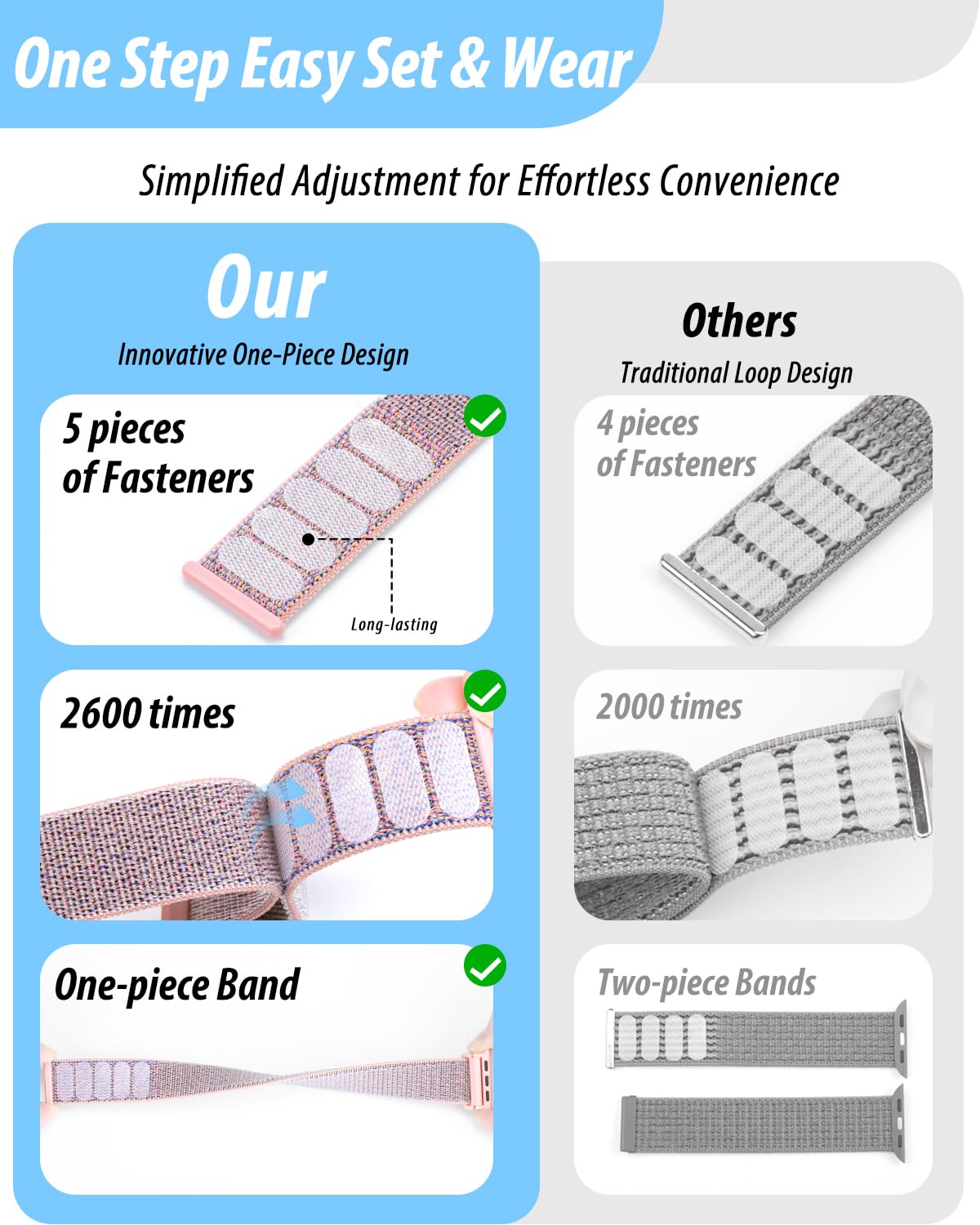 [Easy to Wear]: Our iWatch bands for women men feature a magic tape closure for easy, one-handed length adjustments, ensuring a snug fit during workouts and outdoor adventures. Durable, breathable, and comfortable, they keep your smartwatch securely in place no matter how active you get
