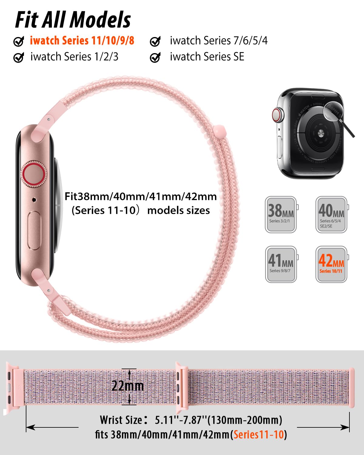 [Fit All Models]: Sunnywoo sports nylon watch bands - Compatible with apple watch for women and men, Fits all apple watches, iWatch Bands for Se, Ultra 3/2/1, Series 11, Series 10, Series 9, Series 8, Series 7, Series 6, Series 5, Series 4, Series 3, Series 2, Series 1, iWatch wrist straps offer two size options, ① 5.11"–7.87" (130–200mm) fits 38/40/41/42mm cases ② 5.51"–8.66" (145–220mm) fits 44/45/46/49mm cases. Please check the size on the back of the watch and choose the right size