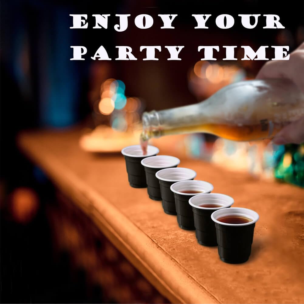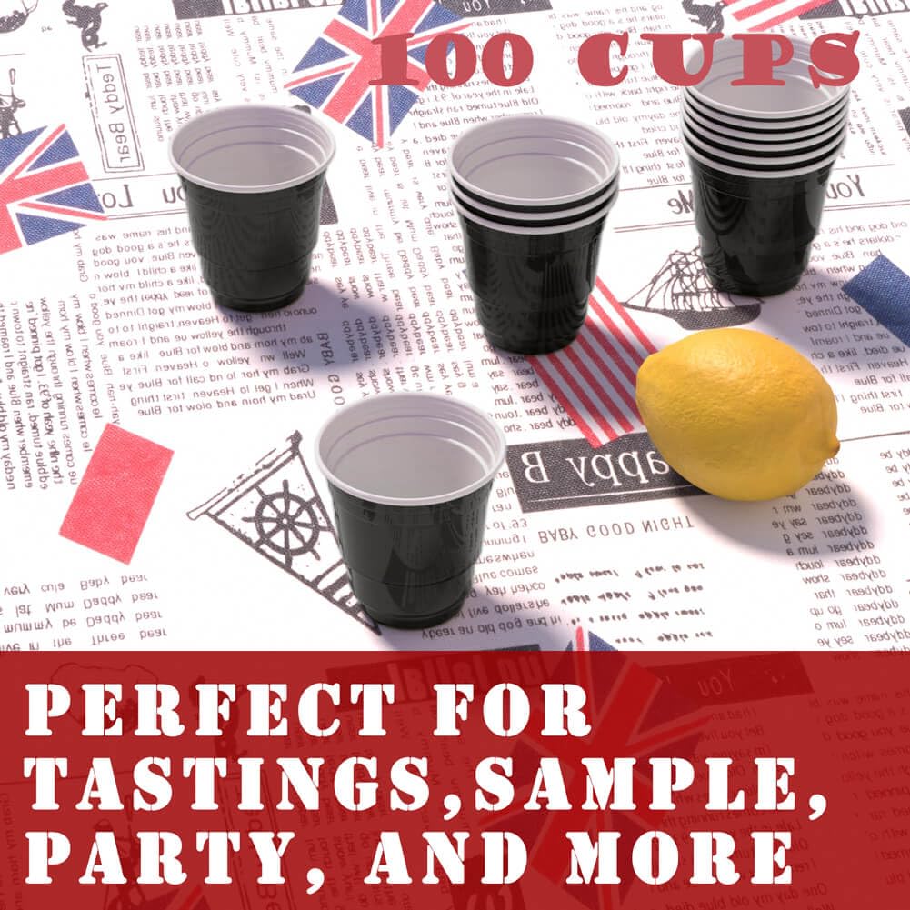 Includes 100 cups in bright black, each with a capacity of 2 ounces