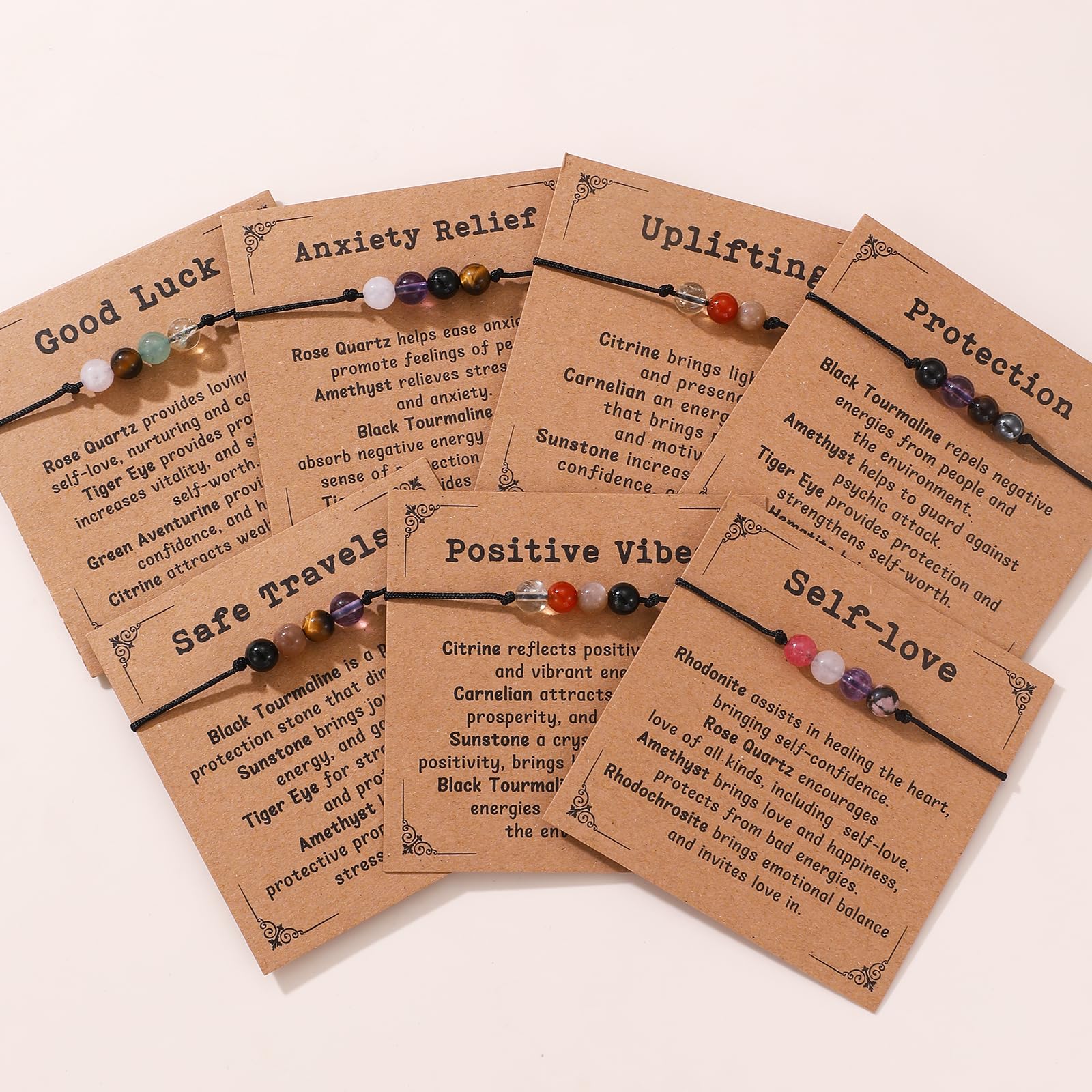 SIZE: The anxiety relief bracelet come with sliding knot closure with adjusting from 4"-11". Four natural healing stones are 6mm, 0.8mm nylon cord for a light comfortable wear. Expandable string bracelet is easy to open and close, suitable for most women.