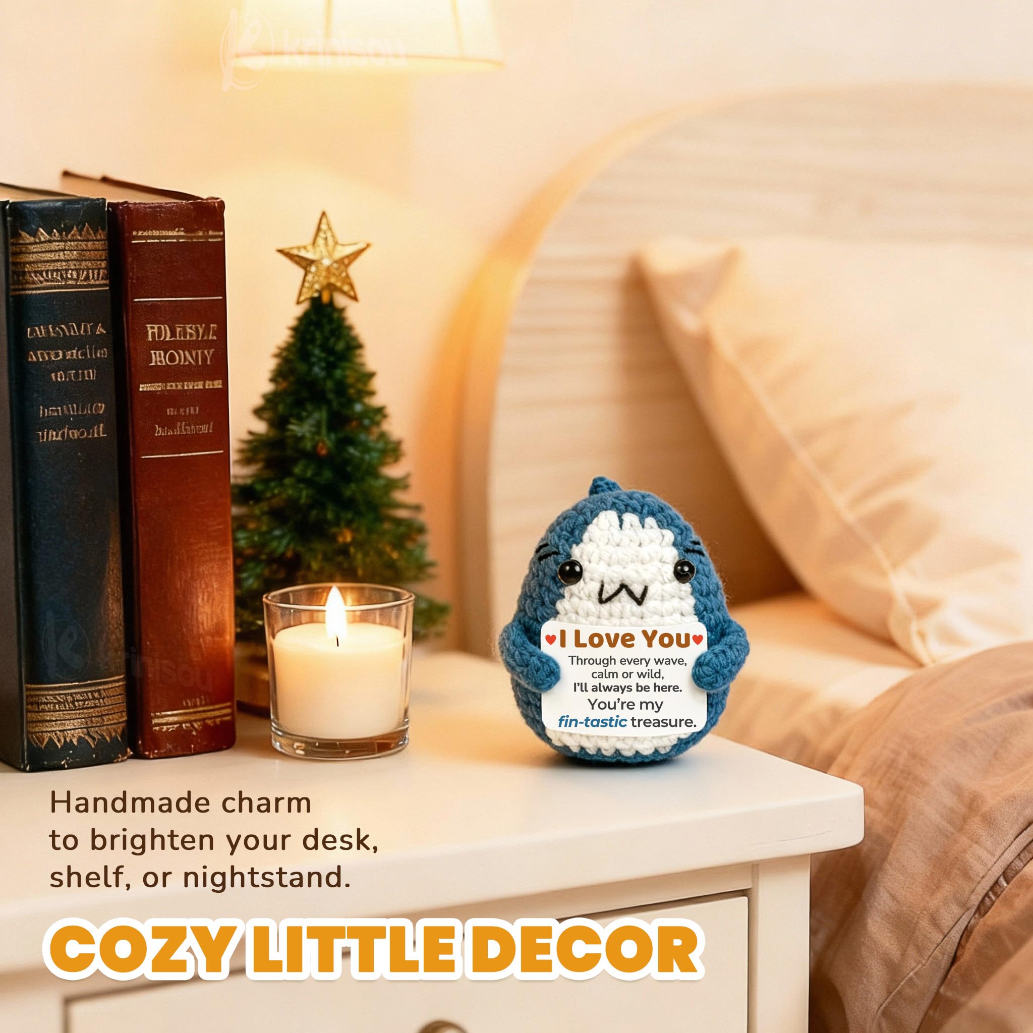 Cute Shark Stuff: This mini blue crochet shark comes with an uplifting card that says, "I Love you, Through every wave, calm or wild, I'll always be here. You're my 'fin-tastic' treasure." It's a fun way to spread love and make Valentine's Day special