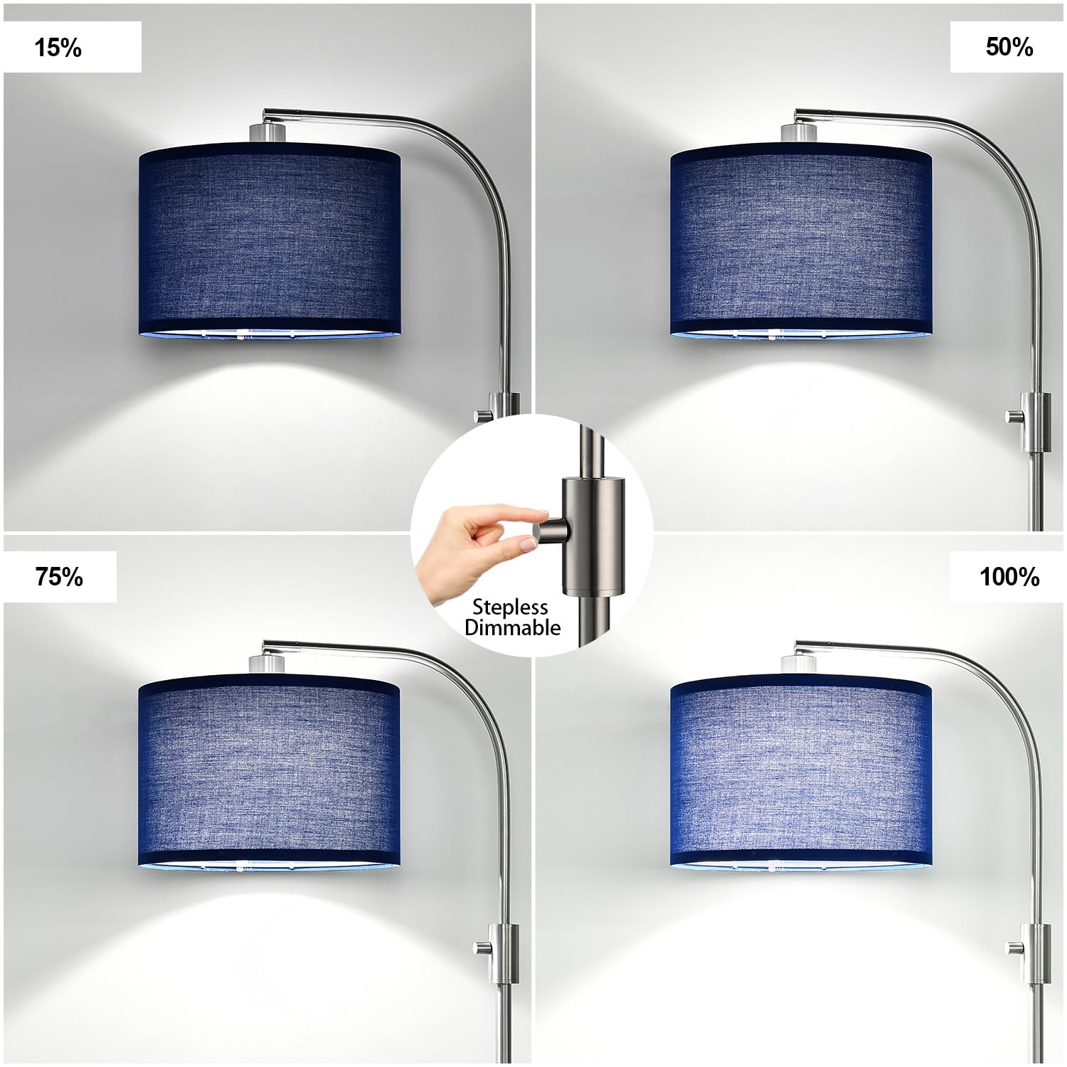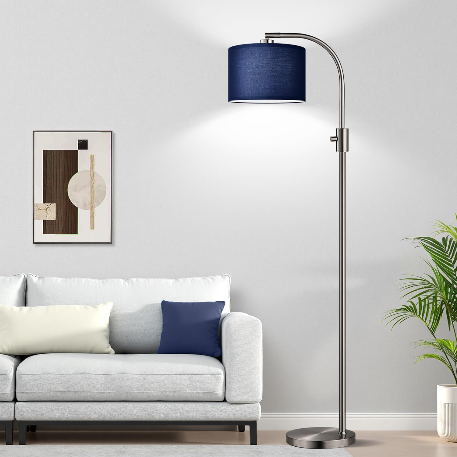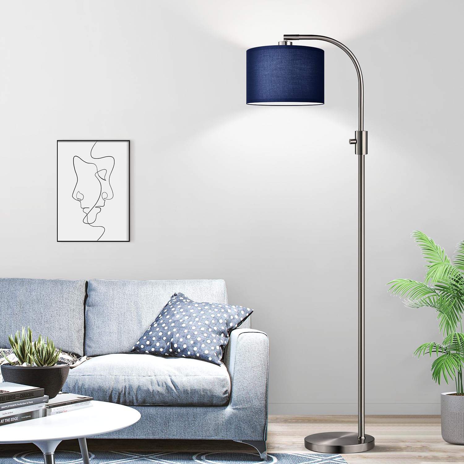 Modern Floor Lamp with 0-100% Fully Dimmable Brightness :Compared to traditional non-dimmable living room floor lamps, our unique floor lamp offers a full stepless dimming function(0 - 100%), making it adaptable to various room styles and lighting requirements you need. This brushed nickel floor lamp with blue shade has a convenient knob switch – simply twist it to customize your favorable lights of floor lamps for living room and bedrooms