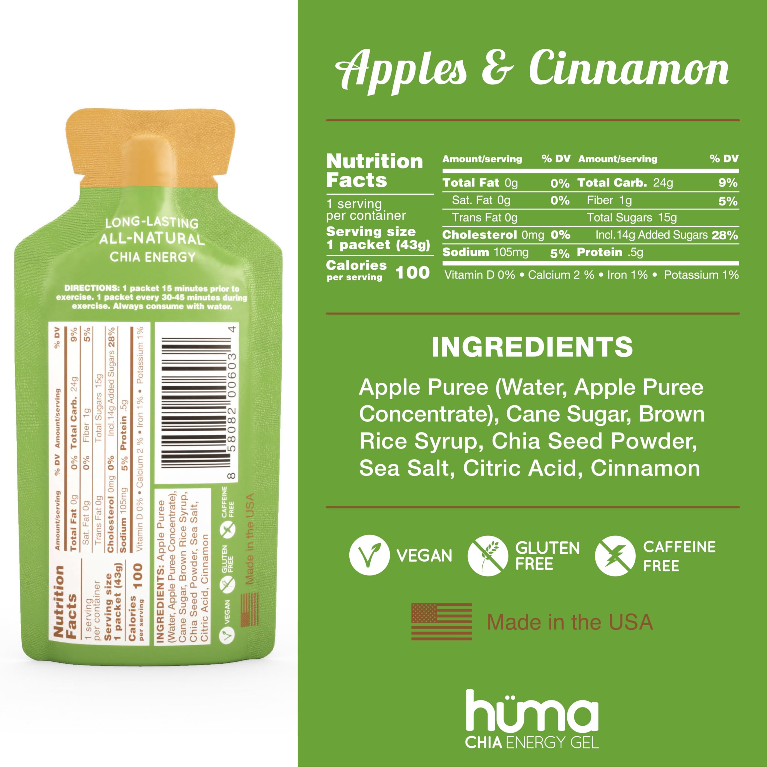 100% ALL-NATURAL SPORTS NUTRITION – Fruit Puree. Powdered Chia Seeds. Brown Rice Syrup. You don't need a PhD to pronounce the ingredients in Hüma products. Gluten Free, Dairy Free, Vegan Friendly. Huma is the best running gel, cycling gel, or triathlon gel on the market.