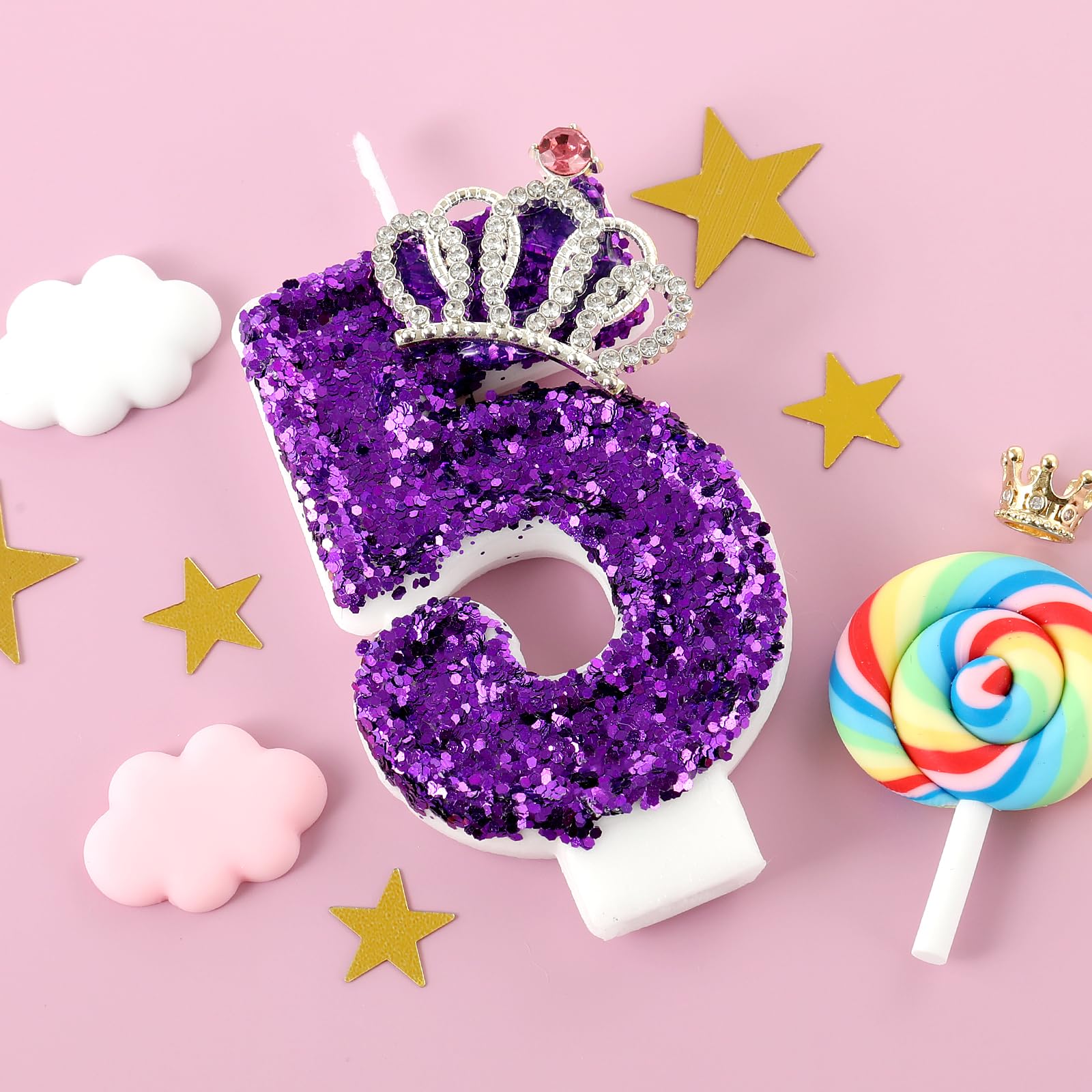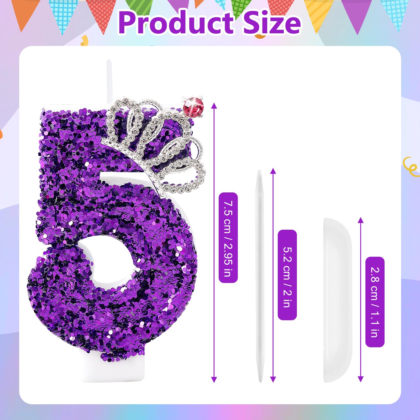 Beautiful: This purple birthday candle has a beautiful crown inlaid on the surface and is beautifully designed to add a bright splash of color to your cake!