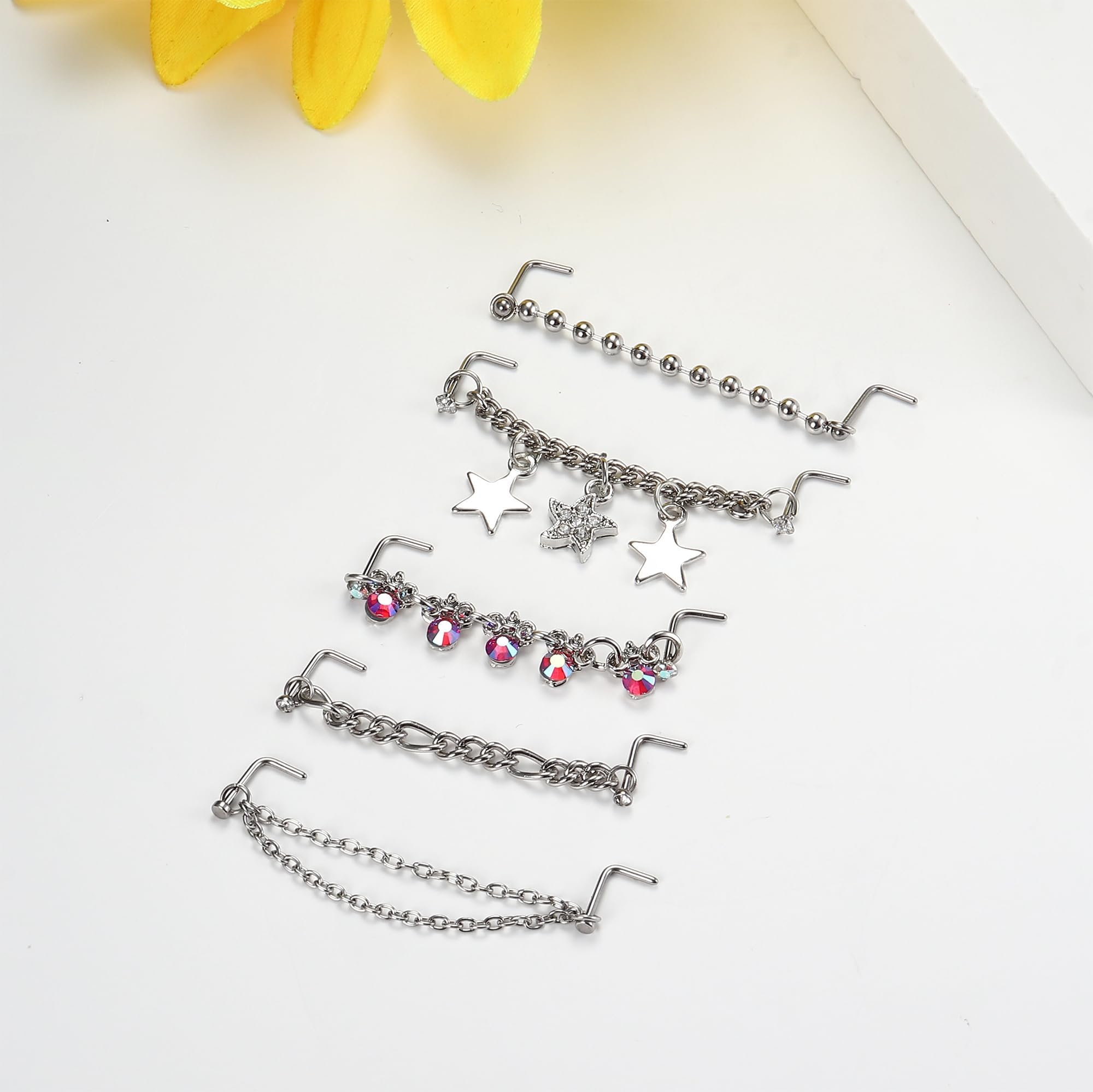 [Multiple Using] These Nose Piercing Jewelry are Suitable for Double or Multiple Nose Piercing. The Nose Chains Can Connected with Nose Studs, Nose Hoops Rings, Fake Nose Rings, Ear Percing and Lip Rings Etc.