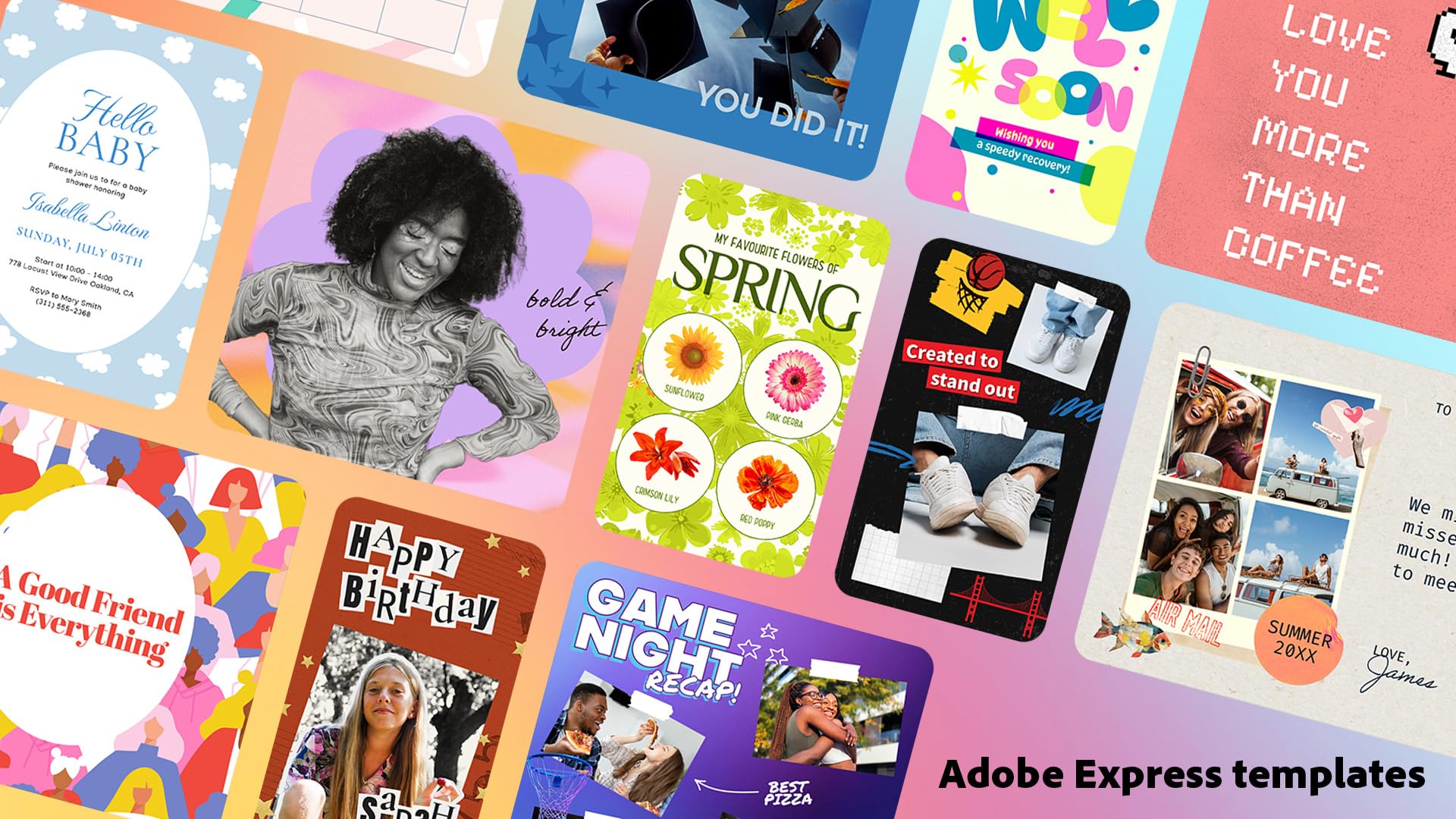 Showcase your pics in Photo Reels and collages and access thousands of free Adobe Express templates for social posts, videos, posters, and more.
