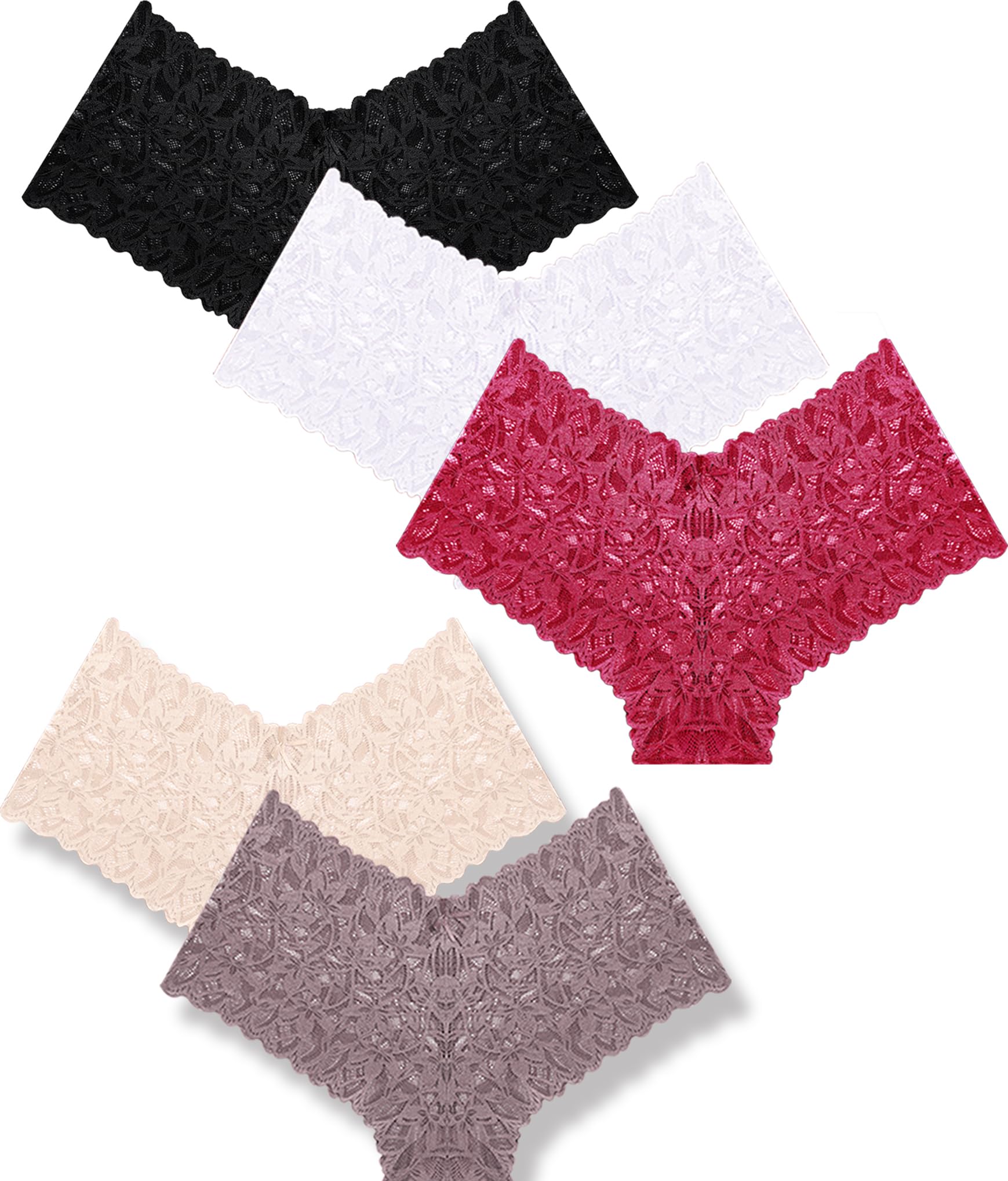 5 PACK Sexy Lace Multiple Underwear Shorts, Sexy Lace Boyshorts Panties Underwear for Women, Plus Size Underwear for Women, Panties for Women, Womens Underwear, Underwear Women Pack, Lingerie for Women