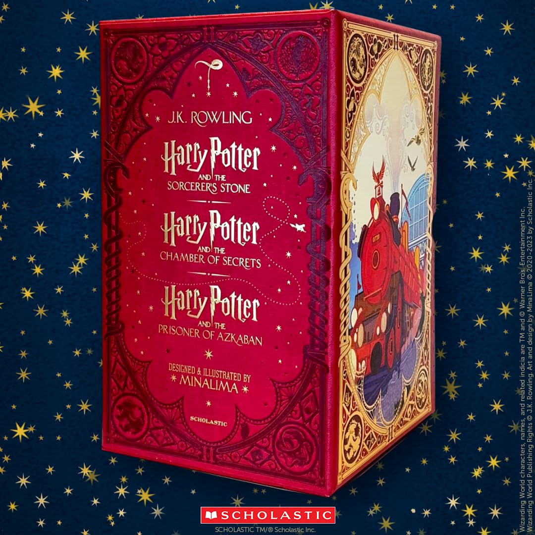 The first three books in the Harry Potter series, fully illustrated and featuring interactive paper-engineered elements, now available in a collectible boxed set! Experience the first three books in J.K. Rowling's Harry Potter series as never before! Designed and illustrated by MinaLima--the award-winning studio behind the visual graphic style of the Harry Potter films--these special editions feature J.K. Rowling's complete and unabridged text, accompanied by full-color illustrations on nearly every page and eight enchanting interactive elements in each book. Readers will open Harry's Hogwarts letter, reveal the magical entrance to Diagon Alley, travel via Floo powder, spin the Time-Turner, and more. This boxed set includes Harry Potter and the Sorcerer's Stone; Harry Potter and the Chamber of Secrets; and Harry Potter and the Prisoner of Azkaban, tucked into a collectible slipcase stamped with elaborate gold foil. This set is a stunning gift for Harry Potter fans of all ages and the perfect way to introduce this beloved series to new readers just beginning their magical journey.