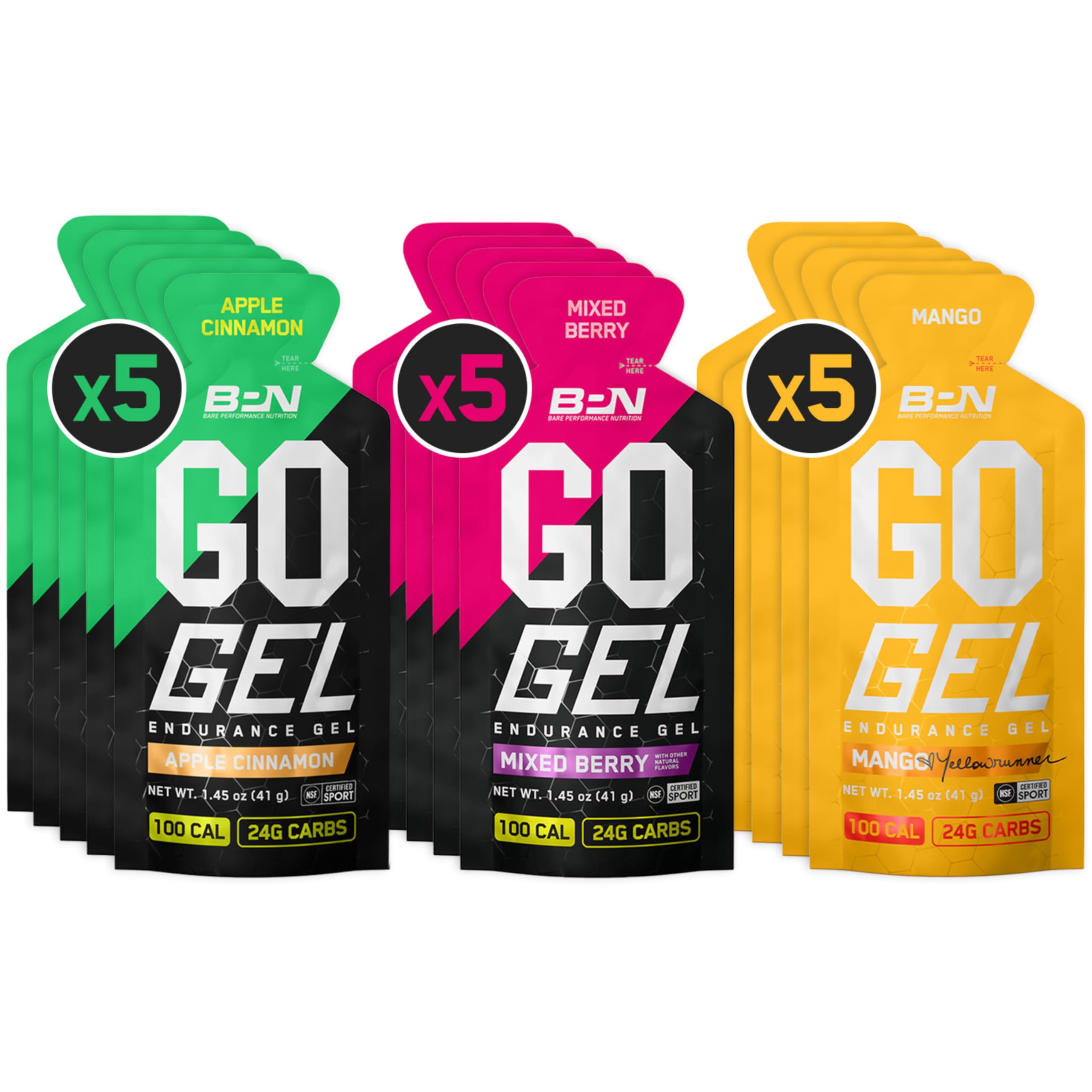 TRY ALL 3 DELICIOUS FLAVORS – This variety pack includes 15 non-caffeinated endurance gels—5 each of Apple Cinnamon, Mango, and Mixed Berry—so you can discover your favorite flavor while fueling your performance.