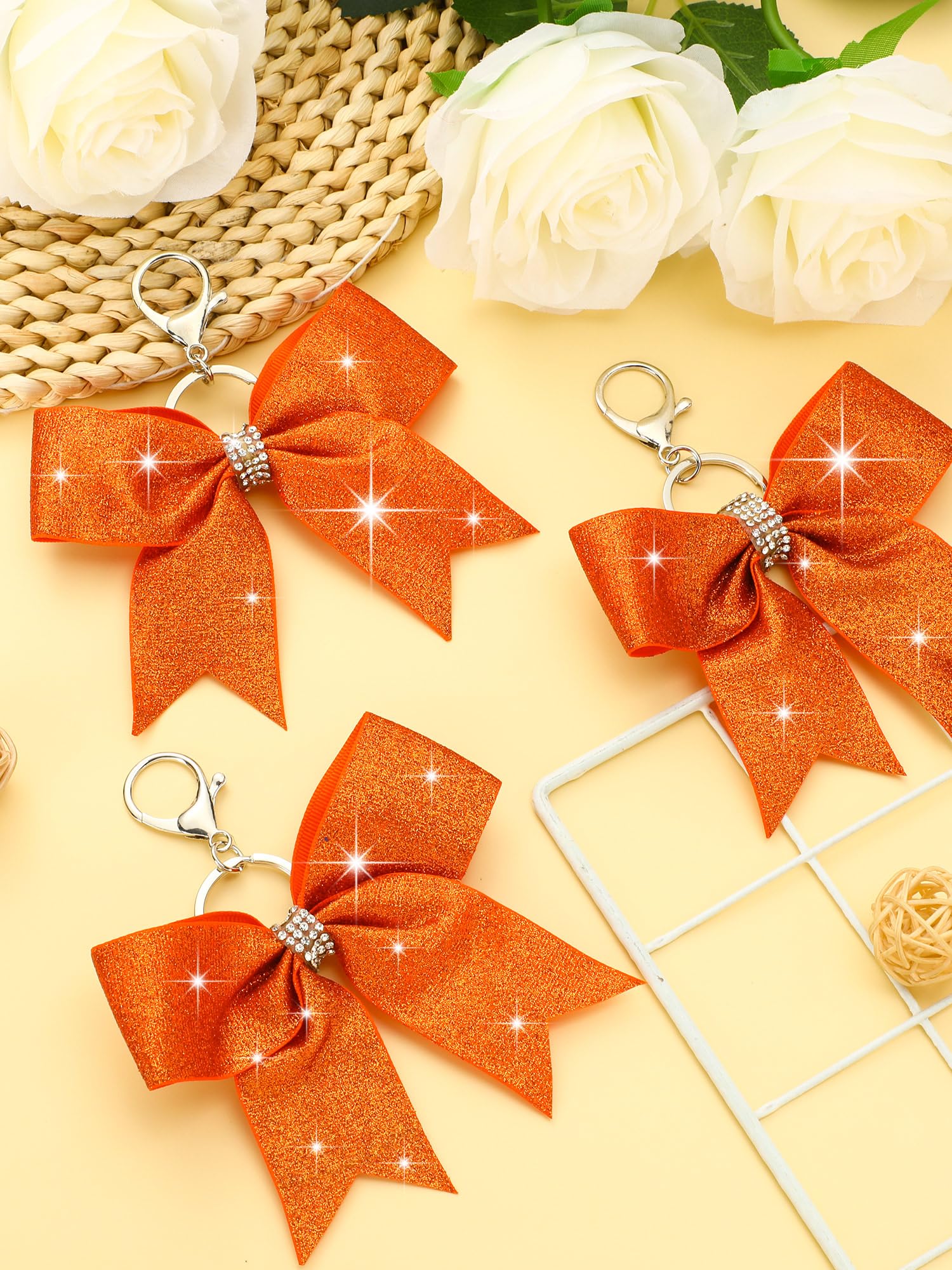 Quality Material: our orange glitter bow key chains are made out of fabric, sturdy metal, and rhinestones; This trio of materials makes a product that's not only visually appealing but is also designed to withstand daily usage; You can expect longevity and continuity of the aesthetic appeal