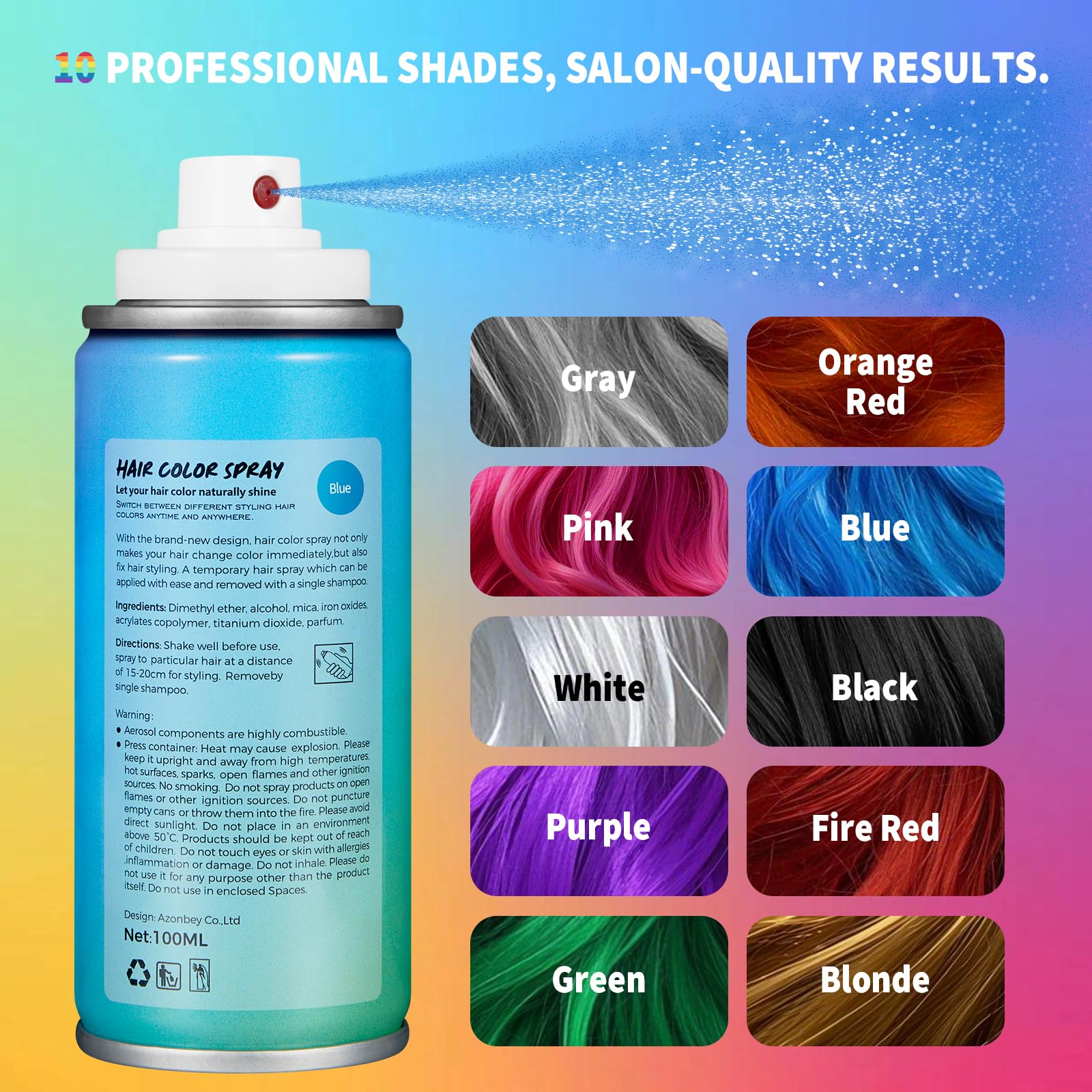 Vibrant Colors: Choose from 50+ bold shades like Purple, Pink, Silver & Blonde. This temporary hair color spray lets you experiment or cover grays for Halloween, parties, or daily fun. Express yourself in seconds!