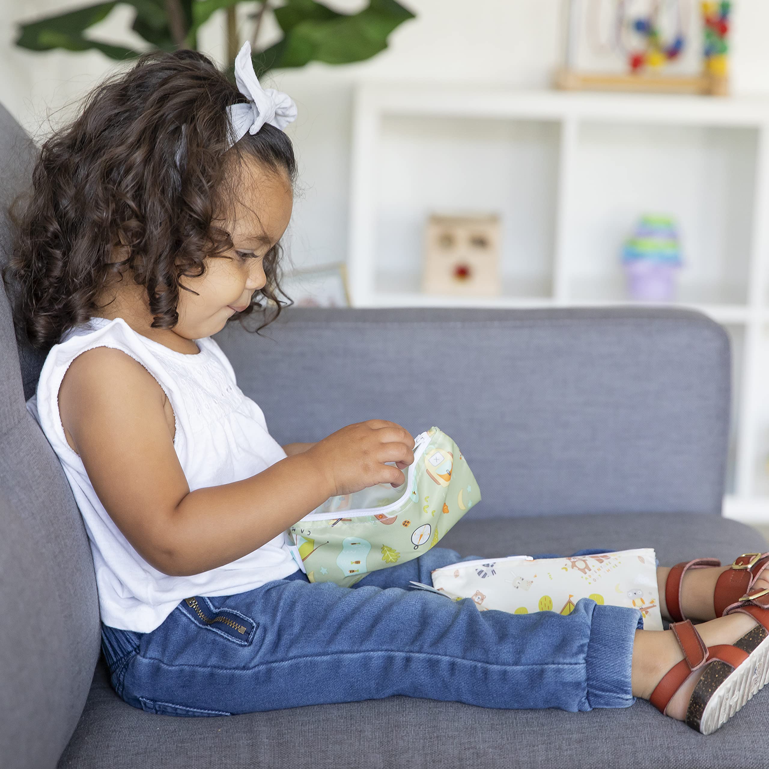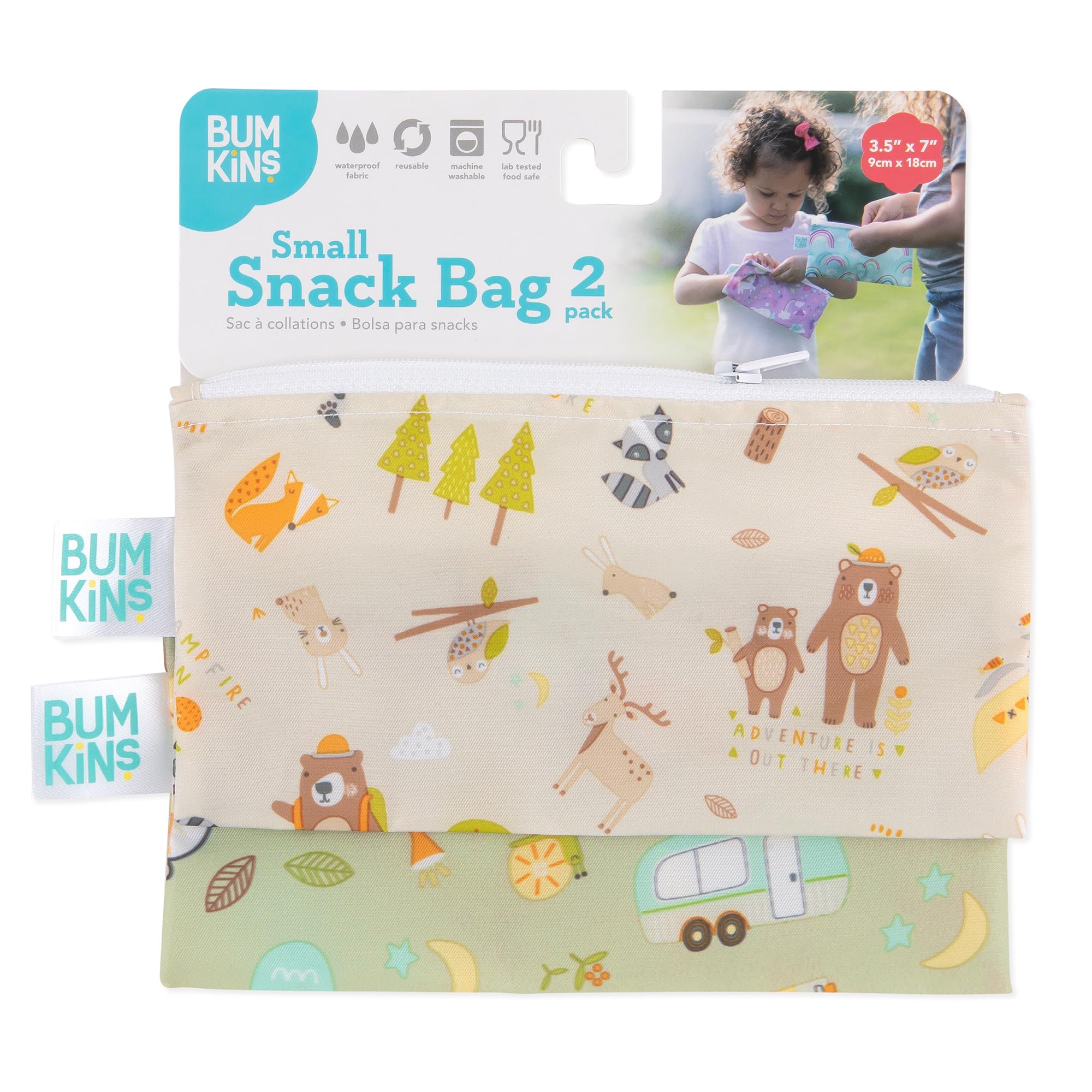 REUSE AND REDUCE WASTE – Bumkins reusable cloth snack bags are made from our original waterproof fabric with zippered closure; not just for lunch, they make excellent organizers for storage and travel; stash inside purse, diaper bag, or travel bag