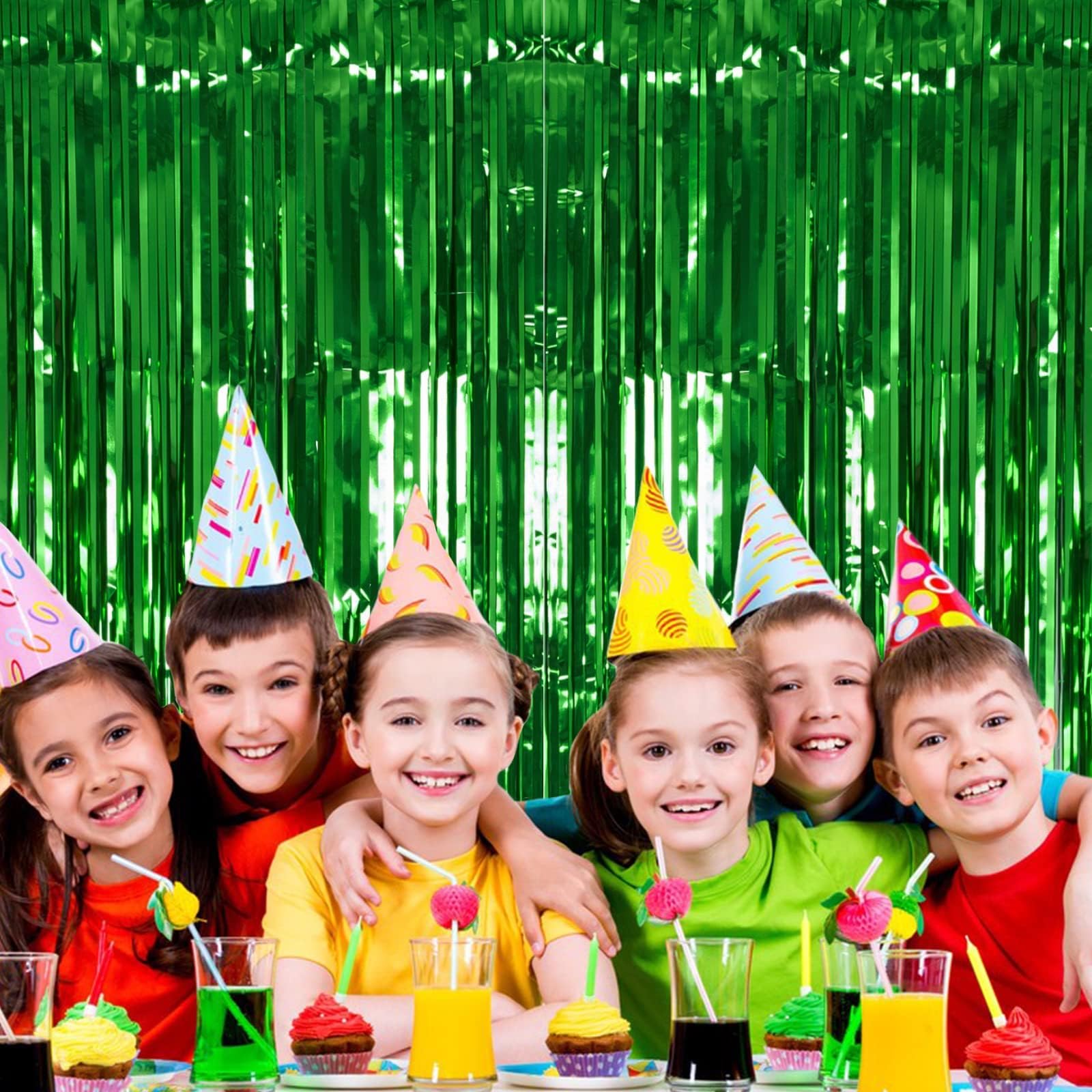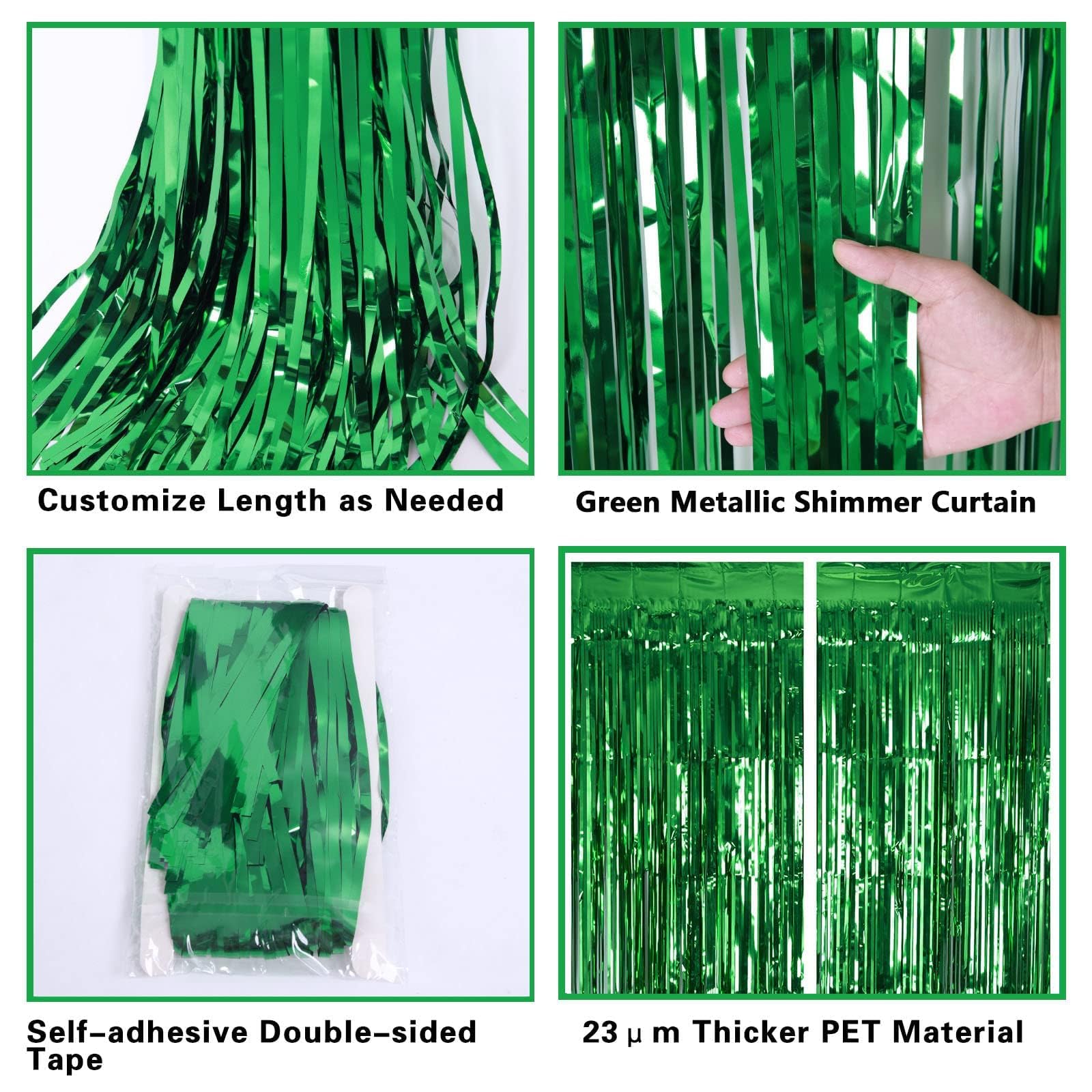【Wonderful Decoration Ornament】This shiny green streamers backdrop is great for Christmas party decorations, world cup party decor, ghost, luau, hawaiian, dinosaur, jungle, summer, safari, st patrick’s day, birthday, fiesta, forest party, Theme Ideas. You can attach some balloons, led-lights, banners, pom-poms, swirls on this gorgeous shiny curtain background to complete the look.