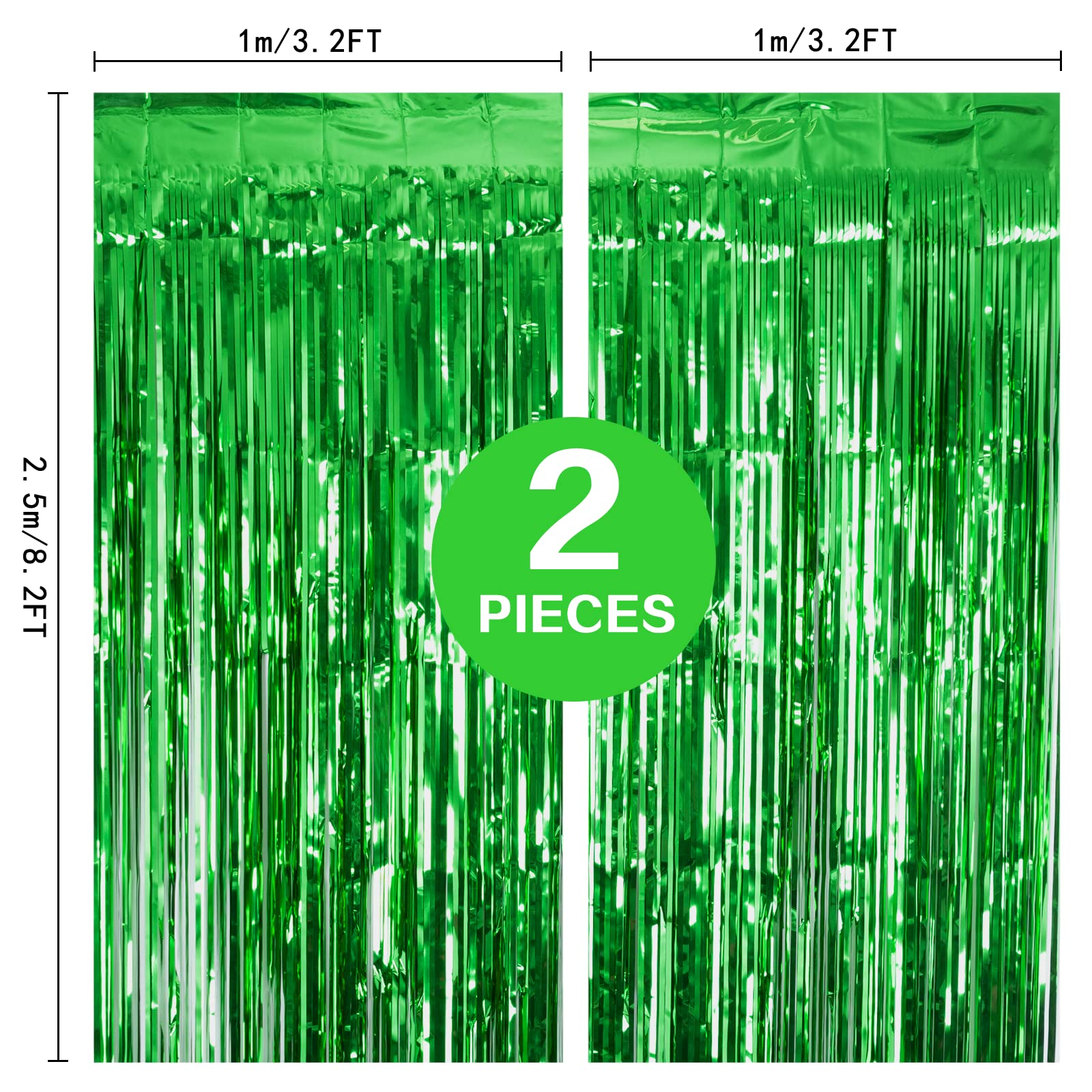 【Package Includes】2 packs green foil fringe curtain; size (wide x drop):3.2 x 8.2 feet; enough length for decorating your bachelorette party. These large size shiny foil curtain backdrops work well in a doorway decor or hang up on your party to create a special feeling.