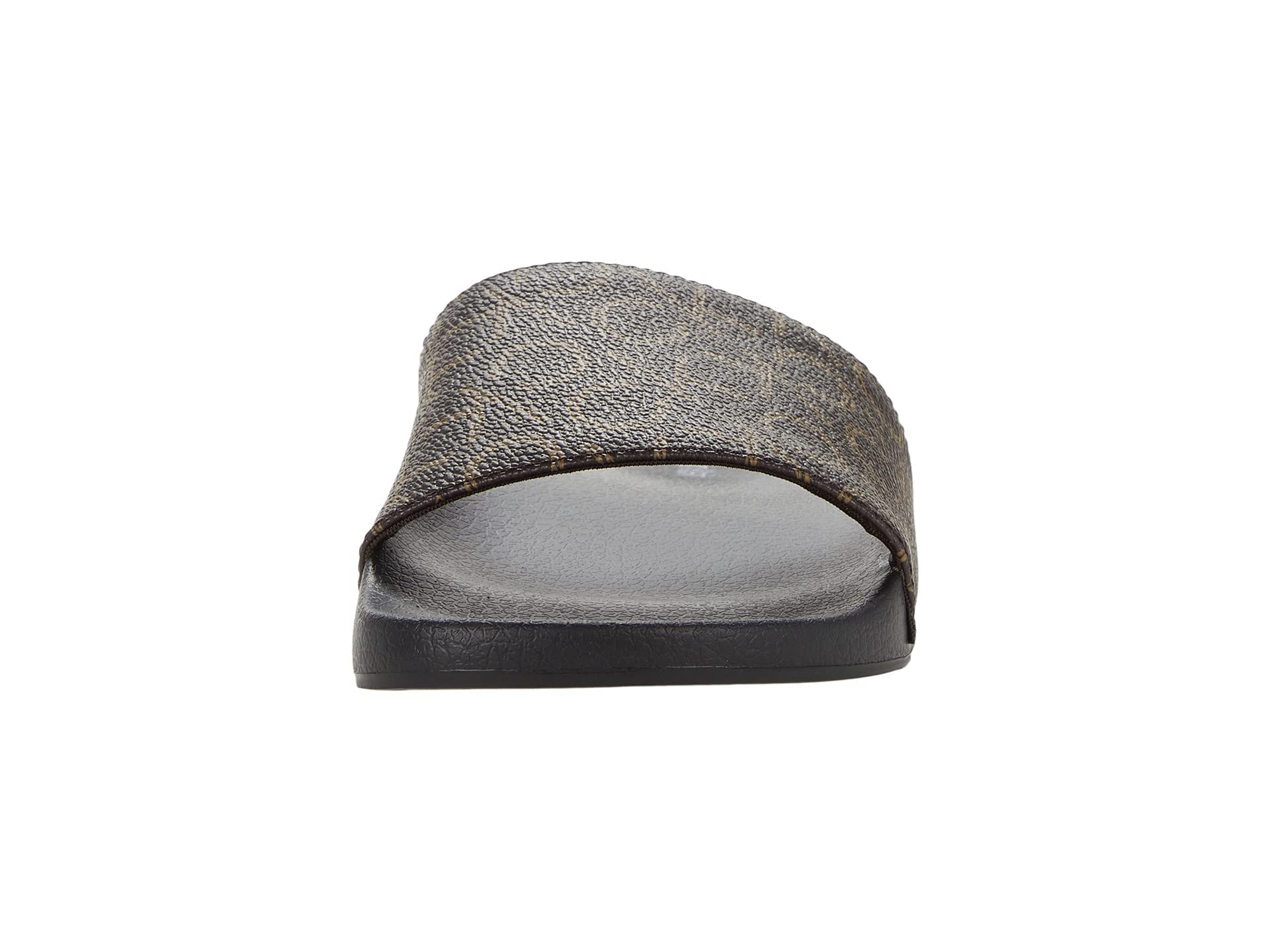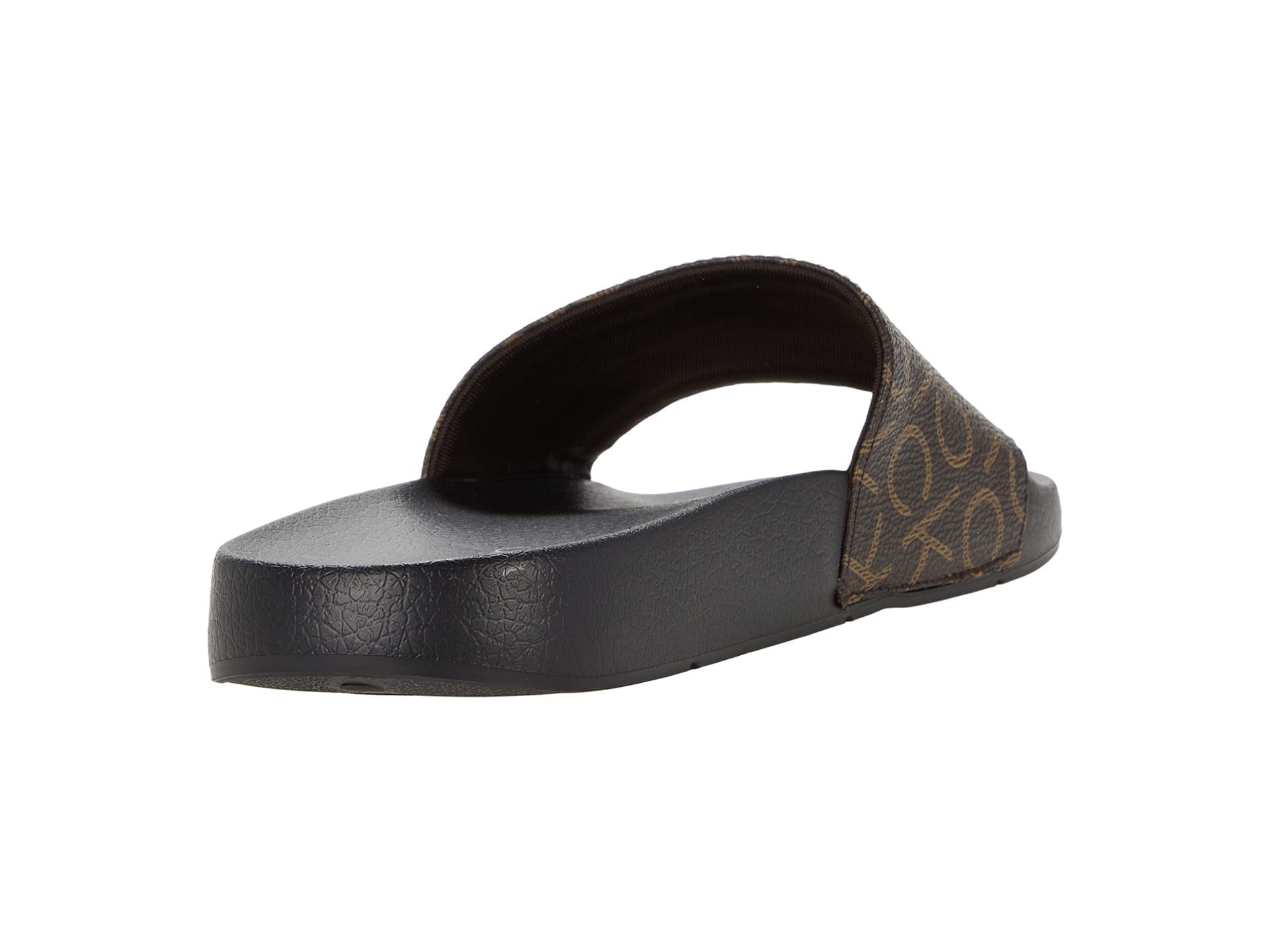 Description Slip into comfort while repping your favorite brand with the Calvin Klein® Athens slides. Founded in New York in 1968, the brand elevates everyday essentials to globally iconic status.