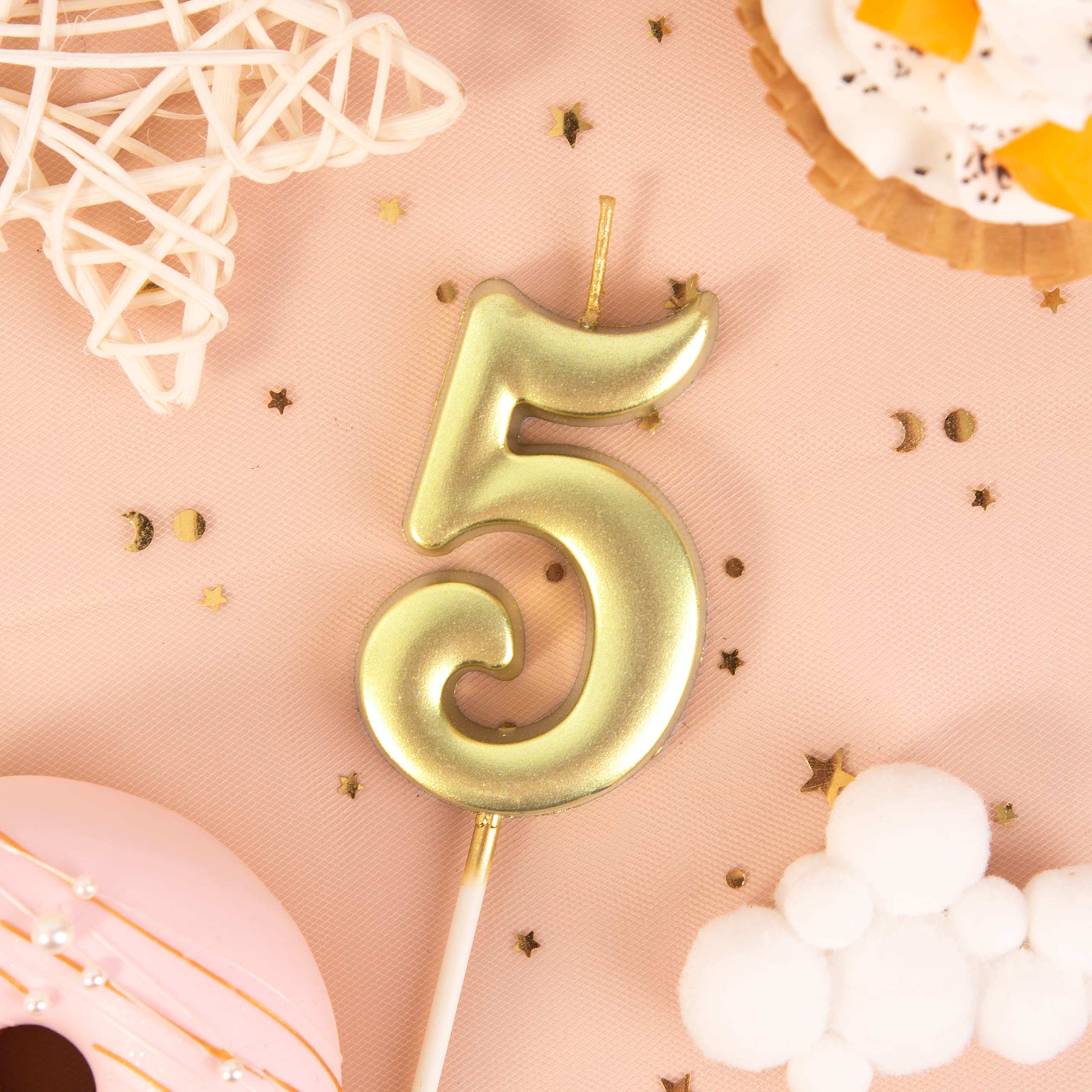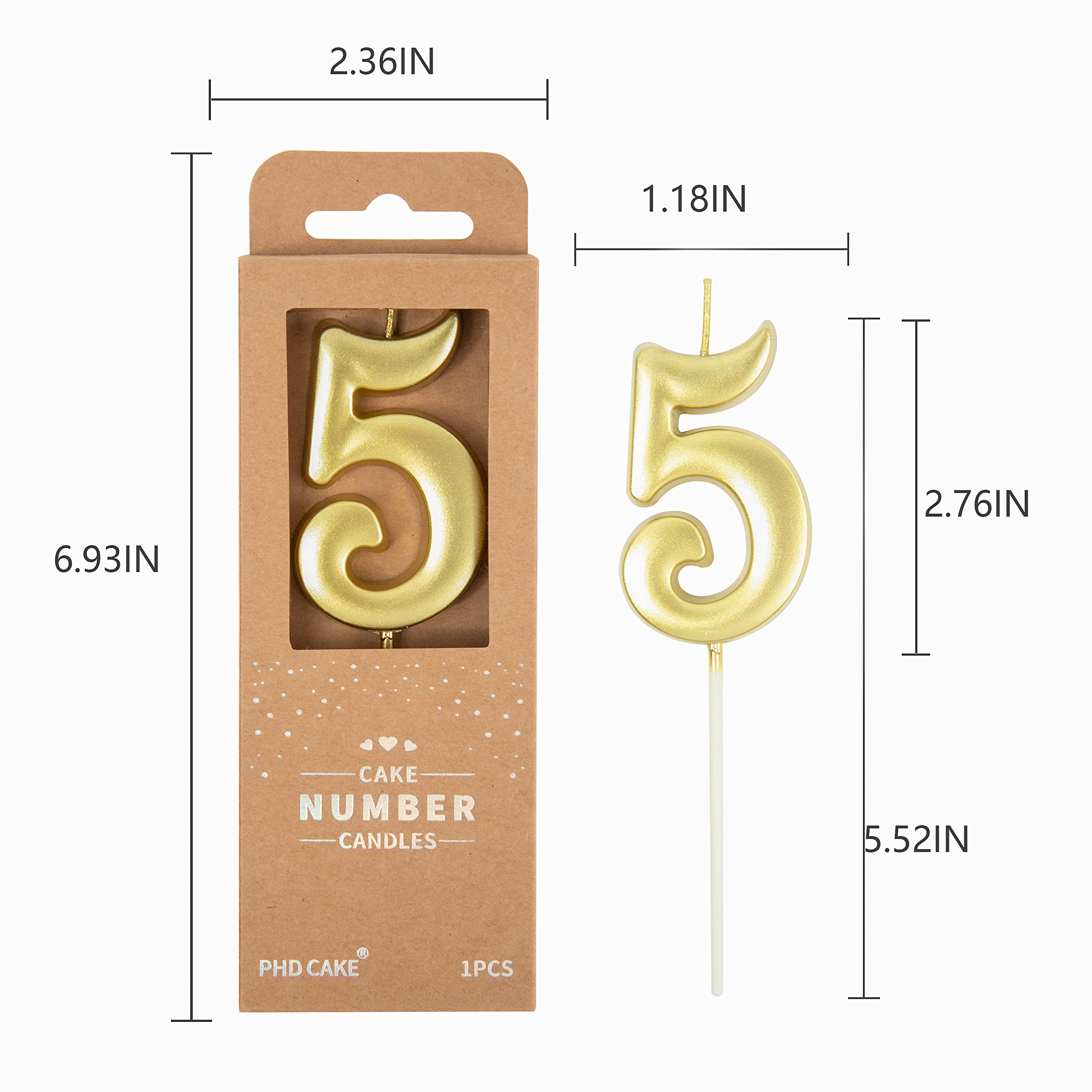 New: 2.76 Inch Large Elegant Gold 5 Number Birthday Candle designed to make your cake and birthday a unique and truly inspiring event.