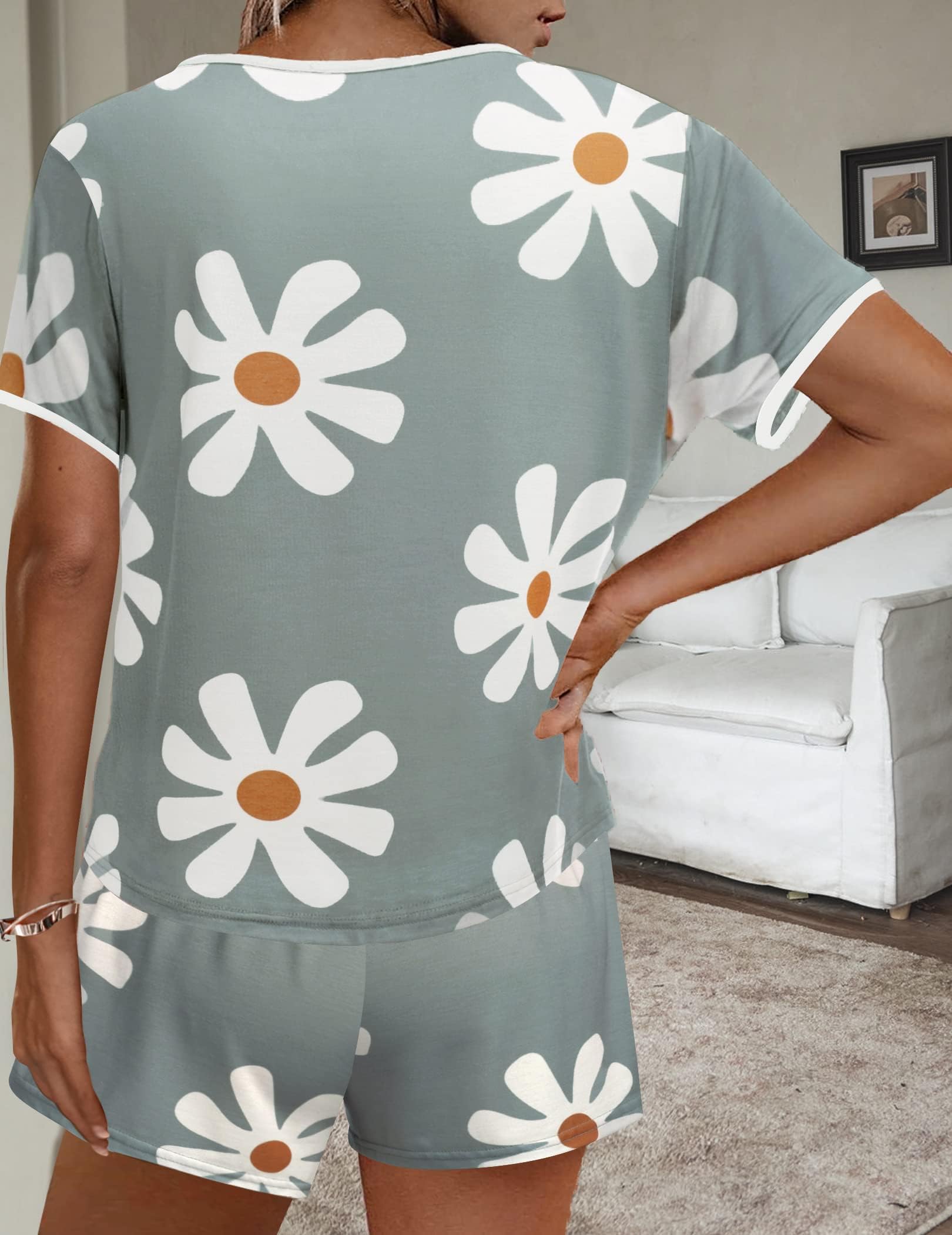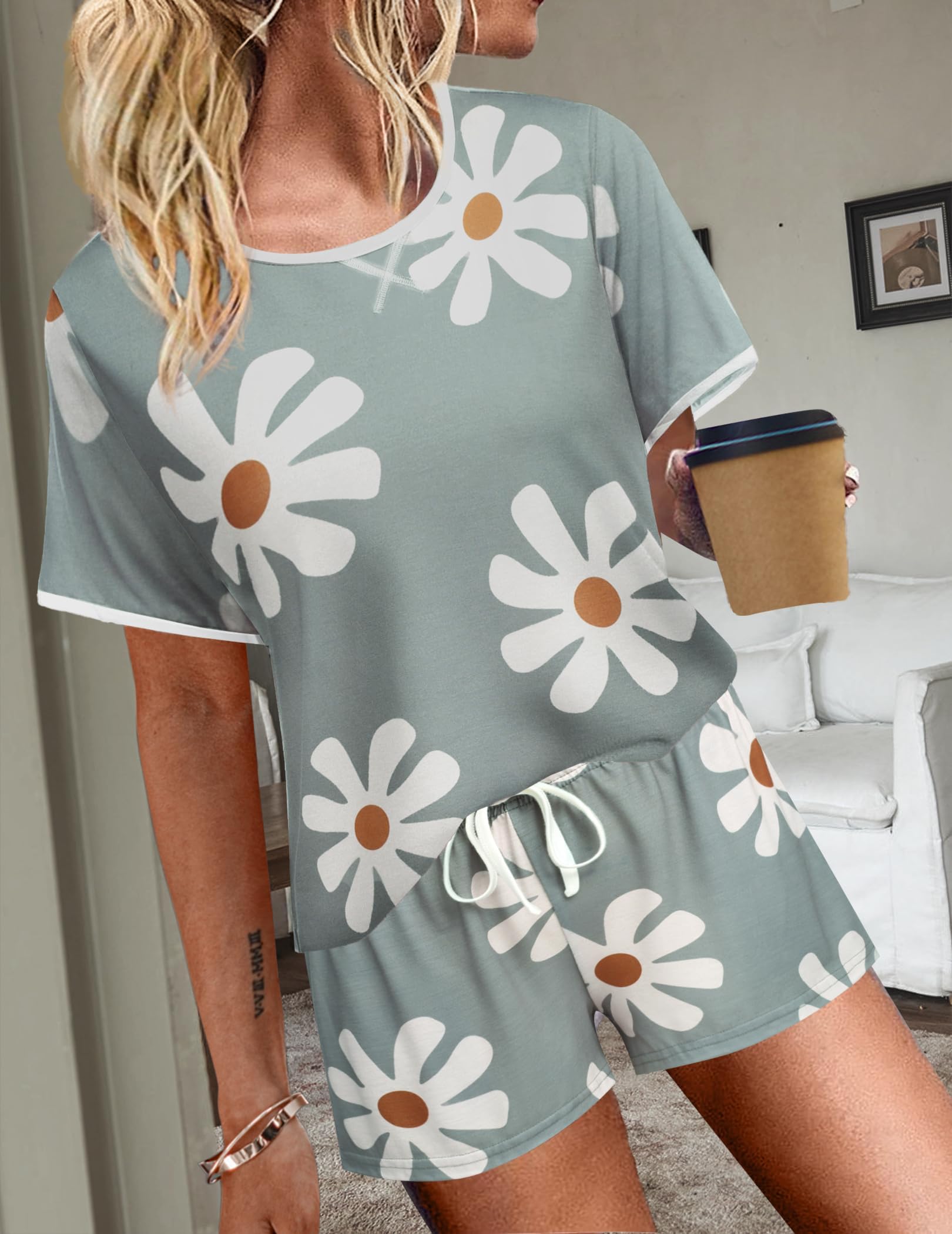 Two Piece Pajama Set: Top- with Round-neck,short sleeve,stylish color block, Pj Short- with Elastic waist,classic plaid & printοΌwhich suitable for every age group. Nice design Short Pajama Set for a relaxing day and night