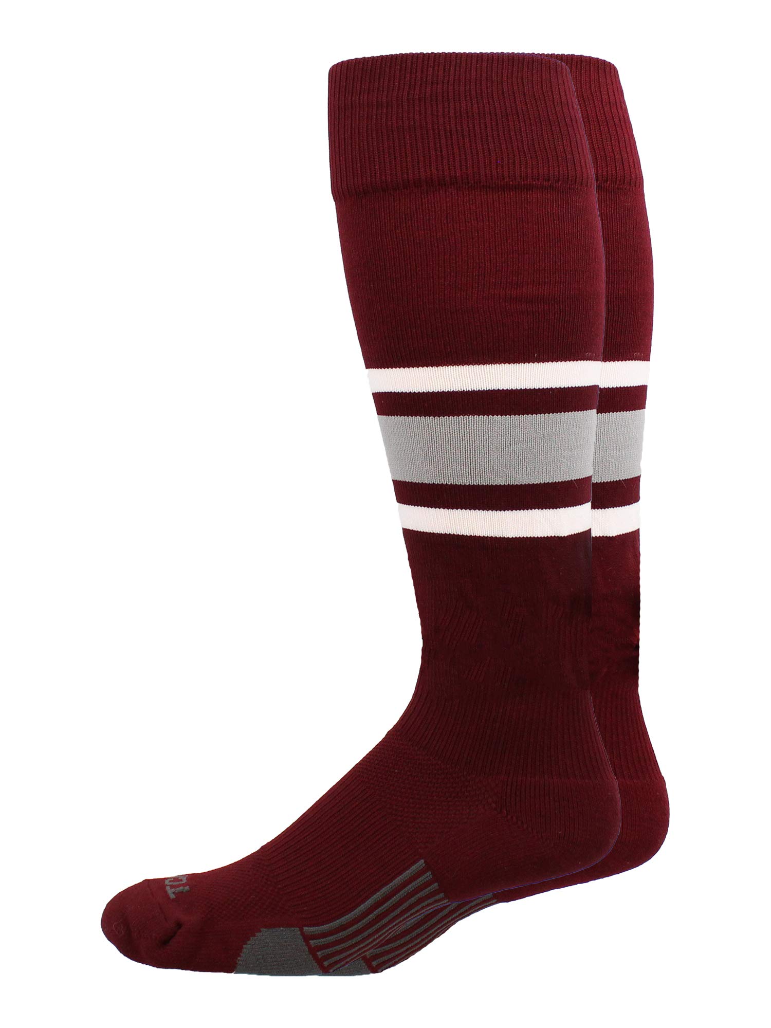PERFECT SOFTBALL or BASEBALL SOCKS: TCK has created world class baseball socks with classic stripes in a multitude of team colors. These socks are an over the calf length which hits just below the knee.|ACCURATE SIZING: TCK Sock Size: Small - Youth Shoe Size 12-5 Medium - Womens Shoe Size 5-10 Mens Shoe Size 5-9 Large - Womens Shoe Size 10-13 Mens Shoe Size 9-12 X-Large Womens Shoe Size 13+ Mens Shoe Size 12+|PERFORMANCE FEATURES: Moisture Wicking Arch and Ankle Compression to reduce fatigue Blister Control Lightweight Double Welt Top Heel/Toe Design Odor Control|PERFORMANCE MATERIALS: Fiber Contents: 87% Nylon 10% Elastic 3% Spandex|MADE IN THE USA: Twin City Knitting (TCK) was founded in North Carolina in 1961 where we still operate today. With over 60 years of manufacturing experience our passion know-how ingenuity and design shows through in every pair of socks we make. When you purchase a TCK sock you can expect high-quality and you can feel good about supporting American manufacturing and directly supporting American employees.