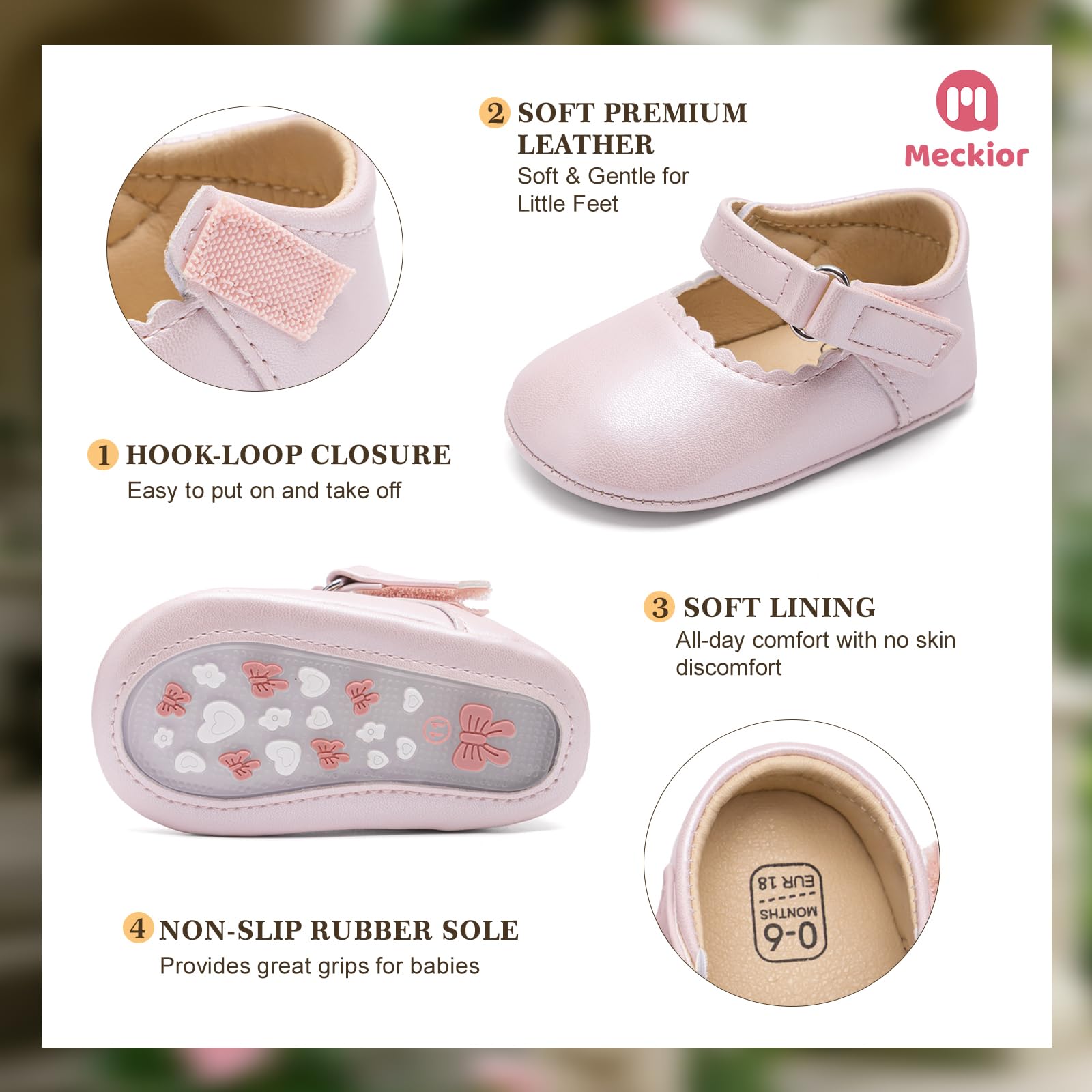 【SOFT】 Soft, Lightweight and Anti-Slip Sole is Well-Crafted to Make Walking Feel Natural.Give Your Baby Feeling of Comfort.