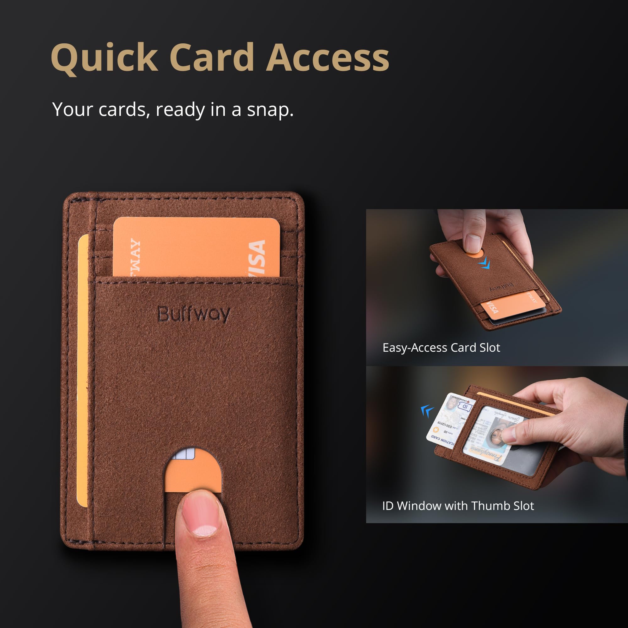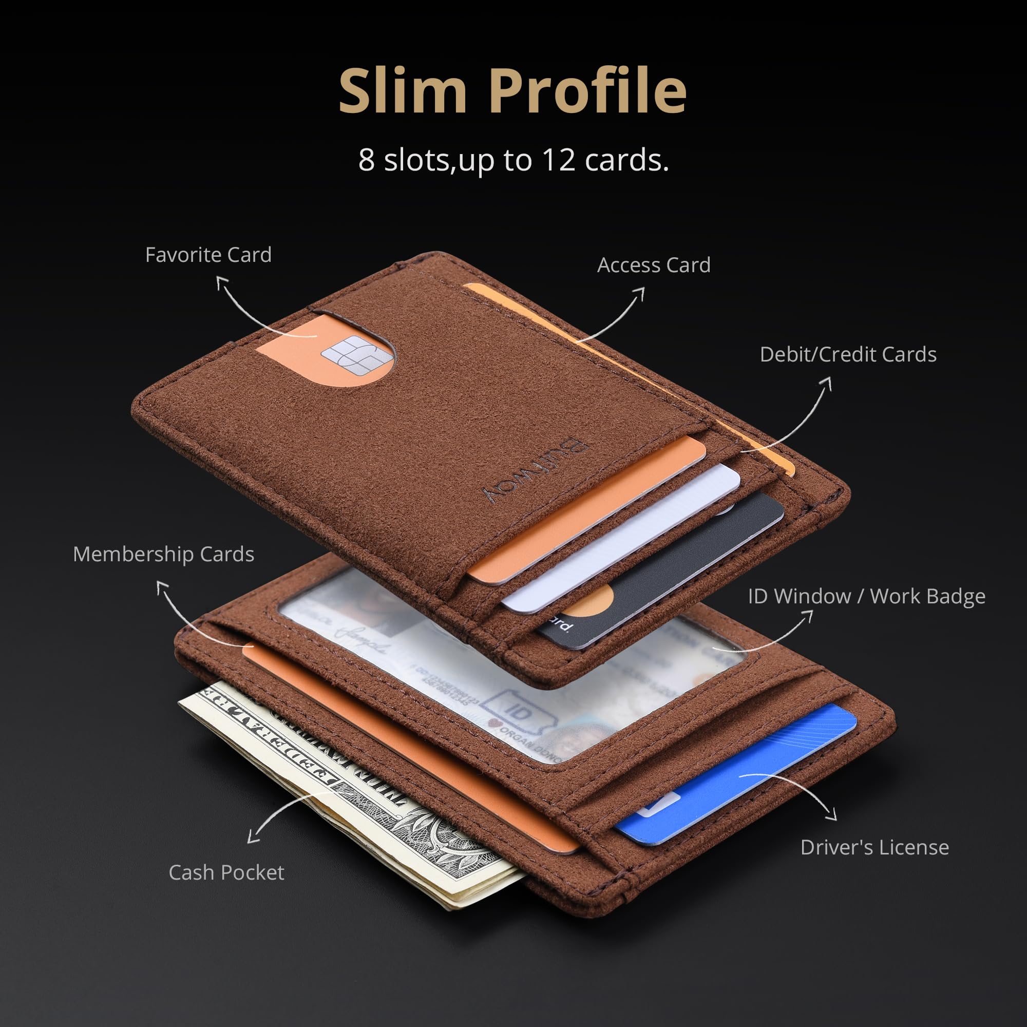 SURPRISINGLY SPACIOUS: Though slim, it features 8 slots to easily organize your essentials. Comfortably holds your driver's license, credit cards, debit cards, and membership cards, keeping everything you need right at your fingertips.