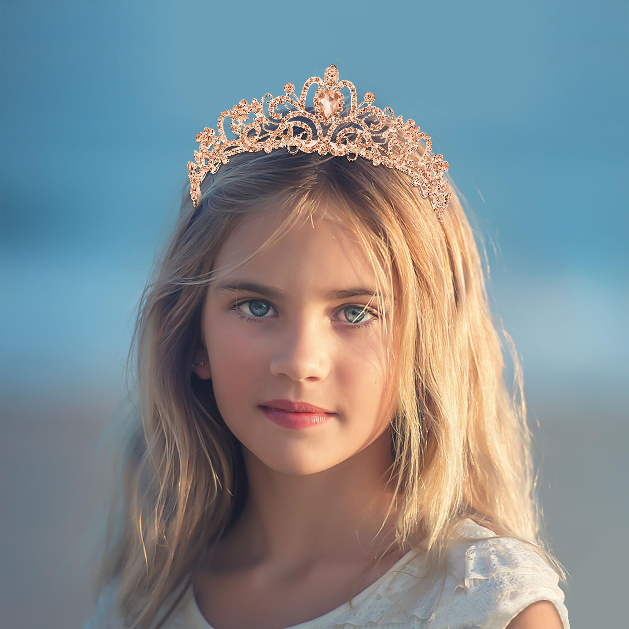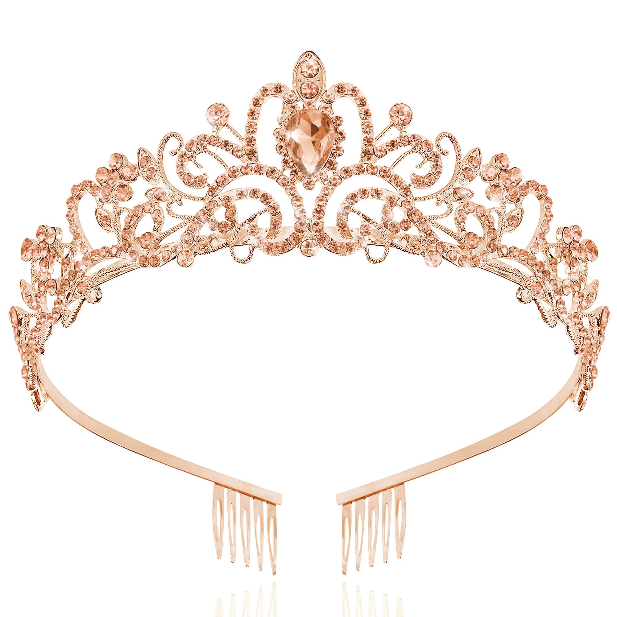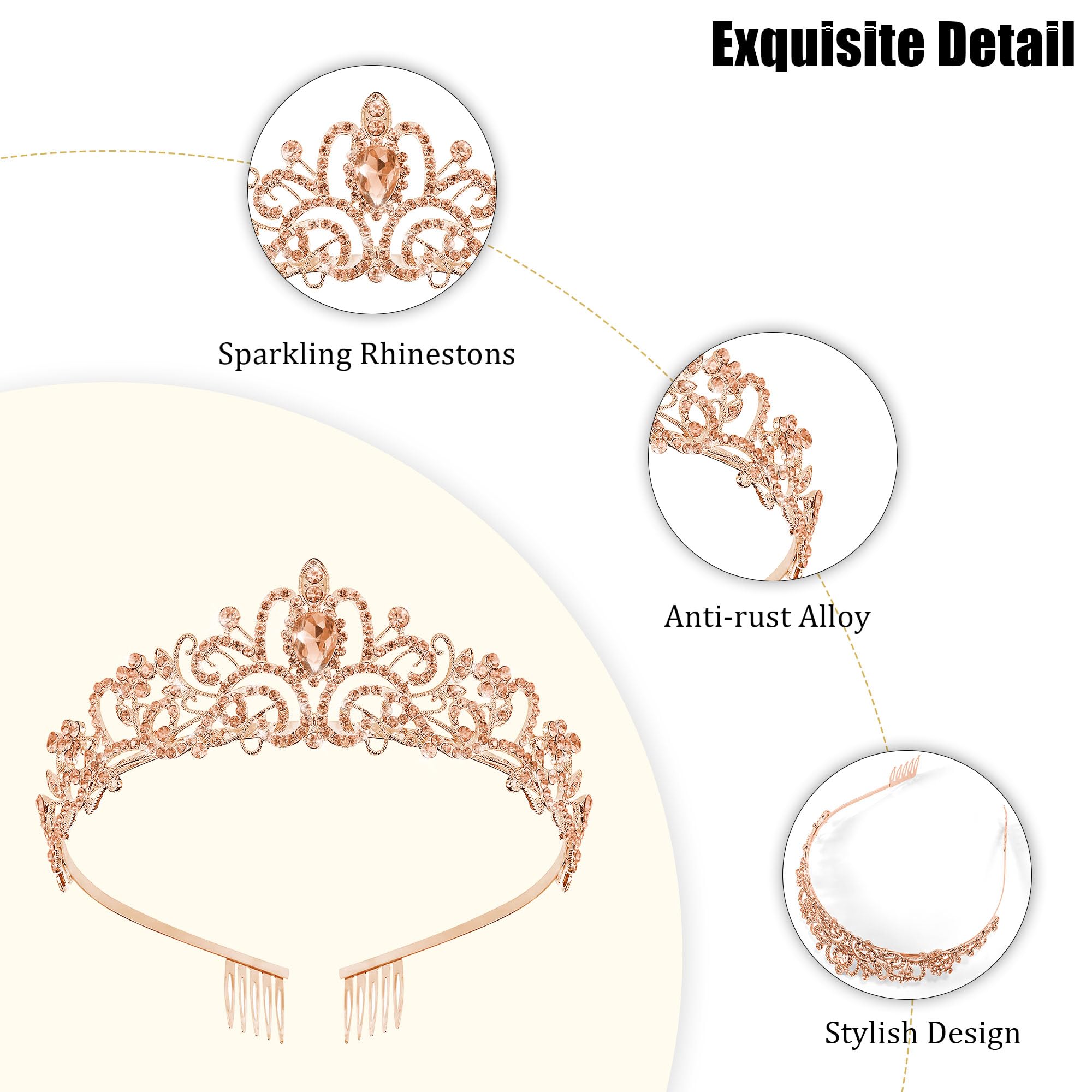 👑[Side-Comb Design] The both sides of princess tiaras for women are designed with comb. Holds the queen crown well on your head. No more worries about your champagne gold tiara falling off on the move. The lightweight structure and adjustable comb provide a fit and gentle grip. Make you pretty without any discomfort.
