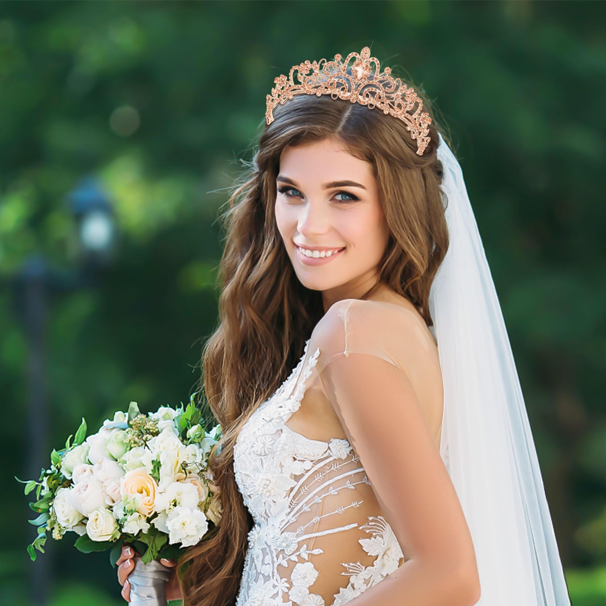 👑[Shine Like A Diamond] Champagne gold tiara for women are finely crafted, sparkling rhinestones shining more brilliantly in premium alloy's company. Classic style and design have a stylish and timeless appeal, bringing elegance and glamor.