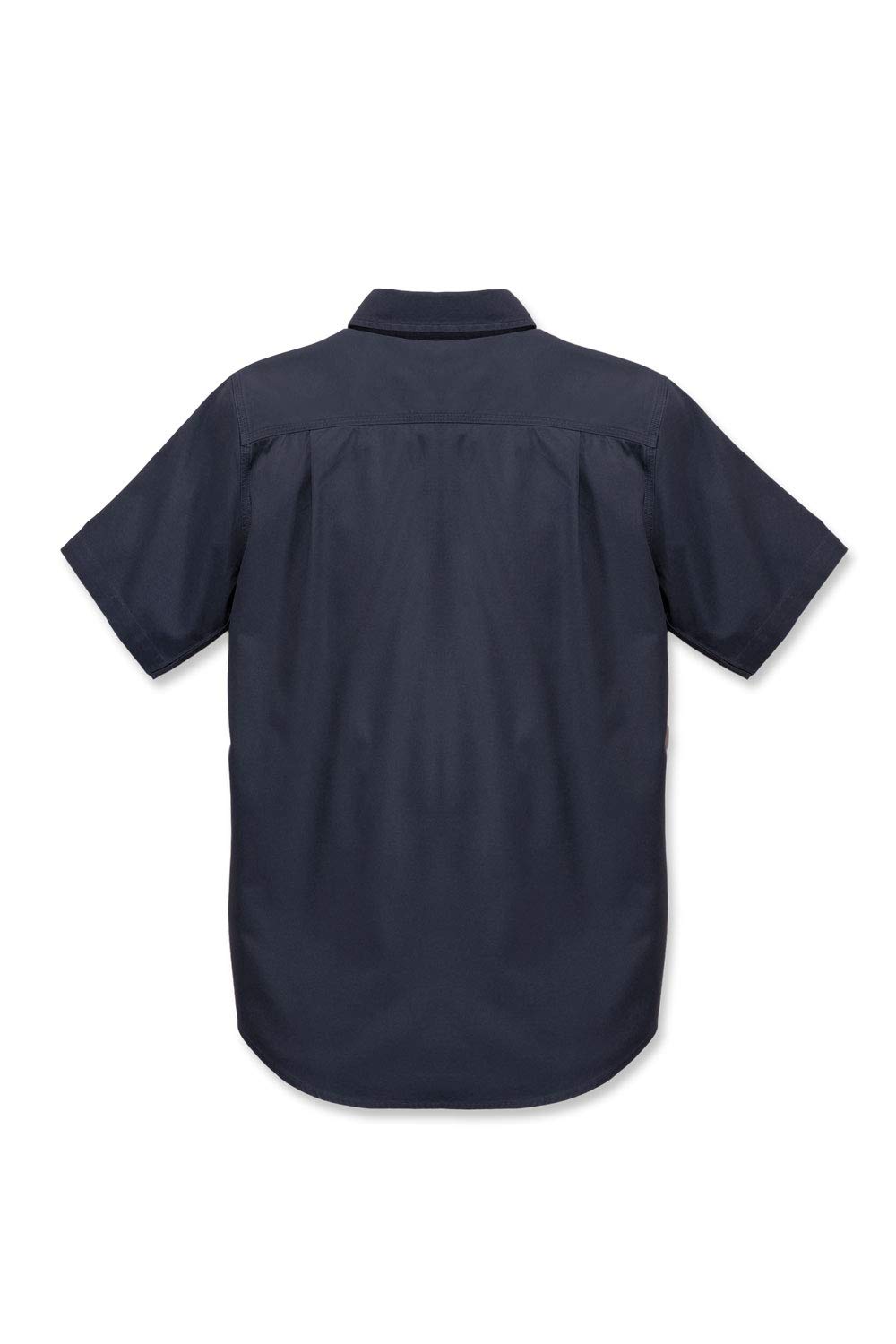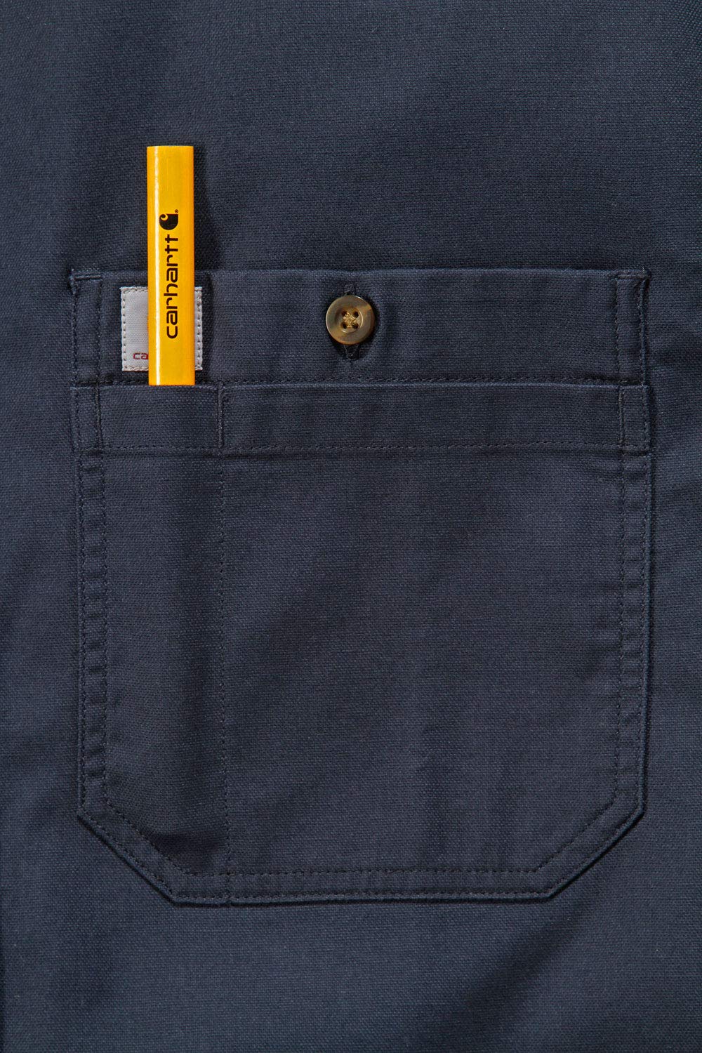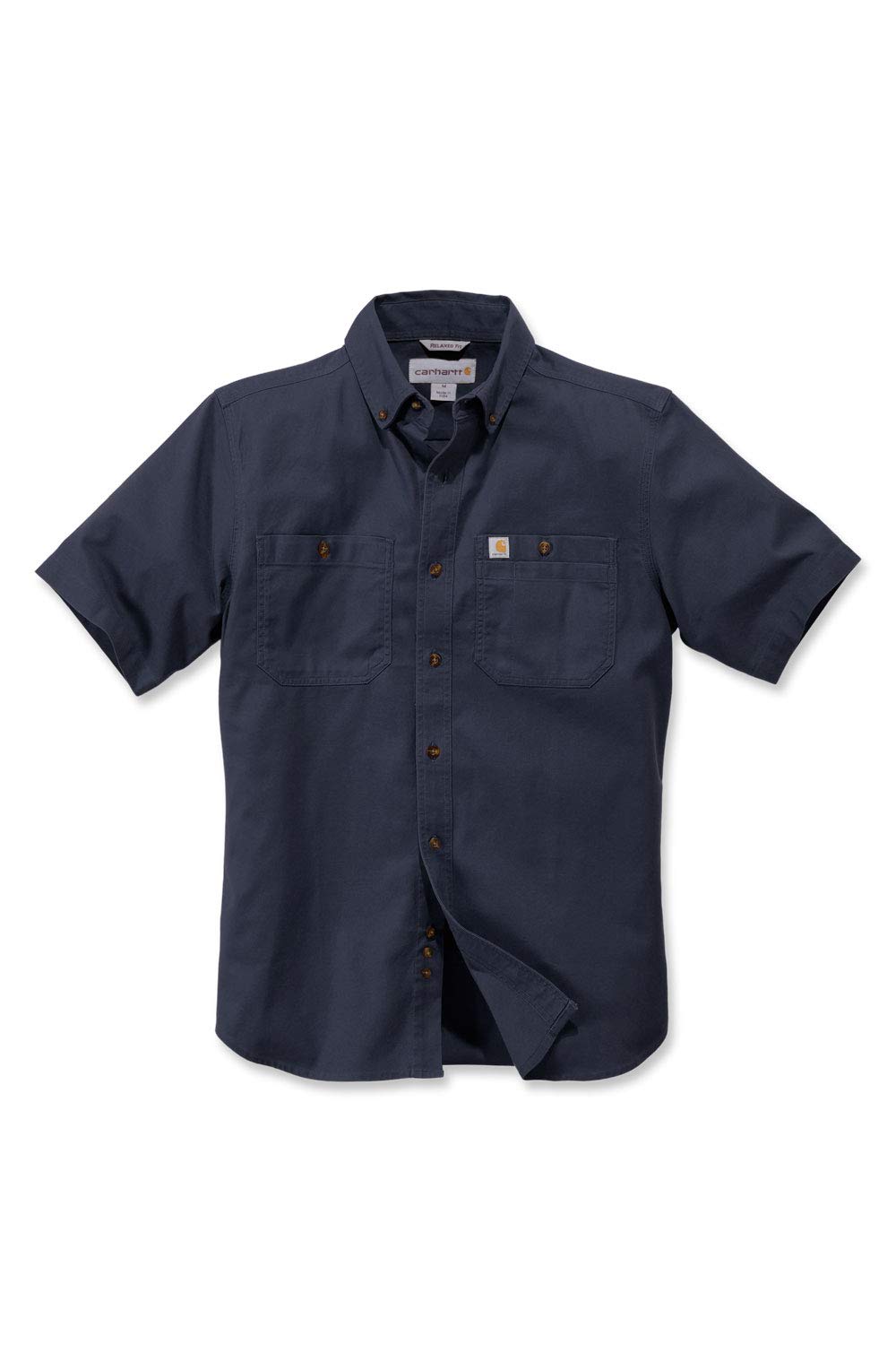 Description This durable short-sleeve work shirt comes standard with built-in stretch, so whatever you're doing, it's easier to do. Relaxed fit 6.5-Ounce, 98% cotton/2% Spandex rugged flex technology for ease of movement two chest pockets with additional left-chest pocket panel for added storage button-down collar two-button adjustable cuffs with extended plackets faux horn buttons drop-tail hem for additional coverage Carhartt-strong triple-stitched main seams imported