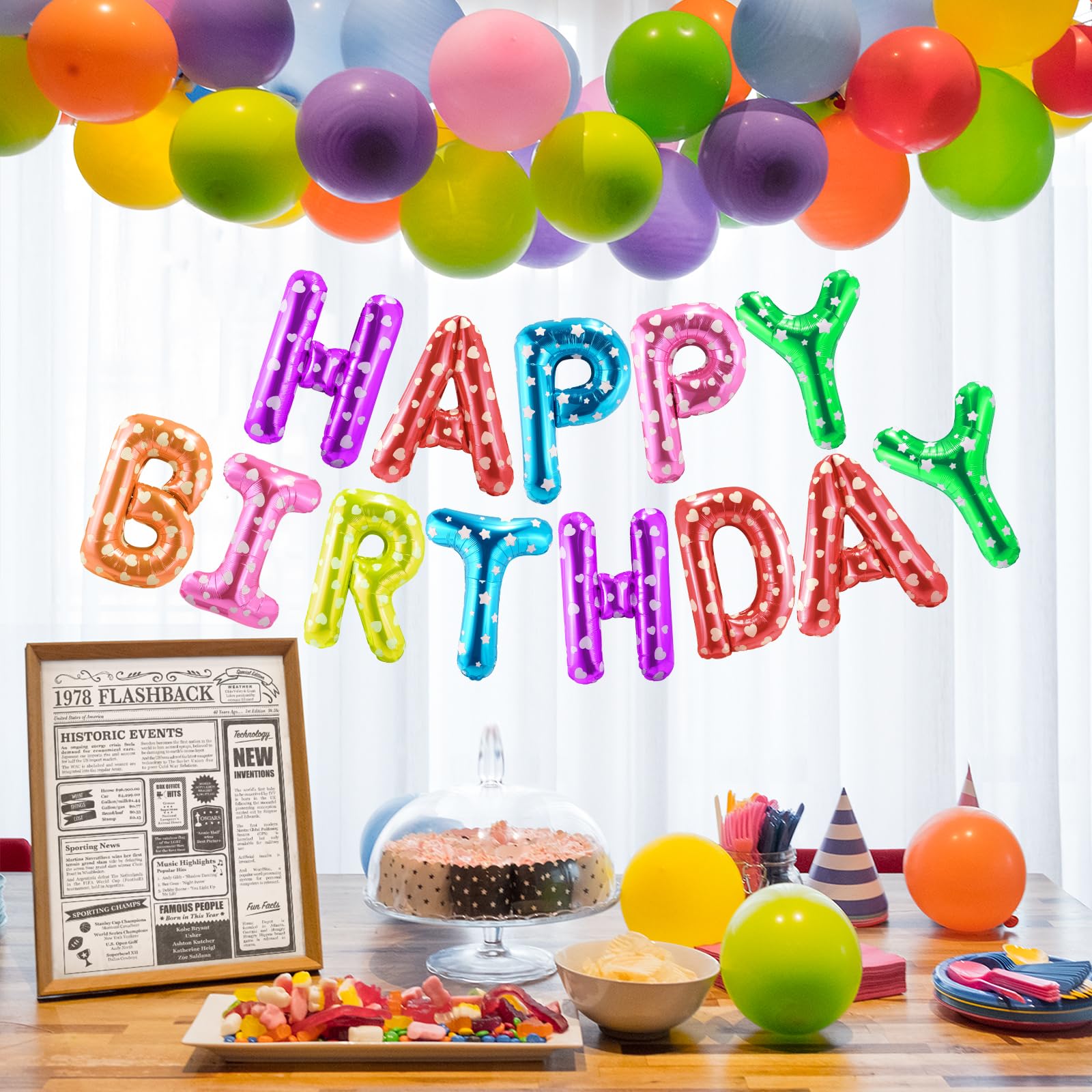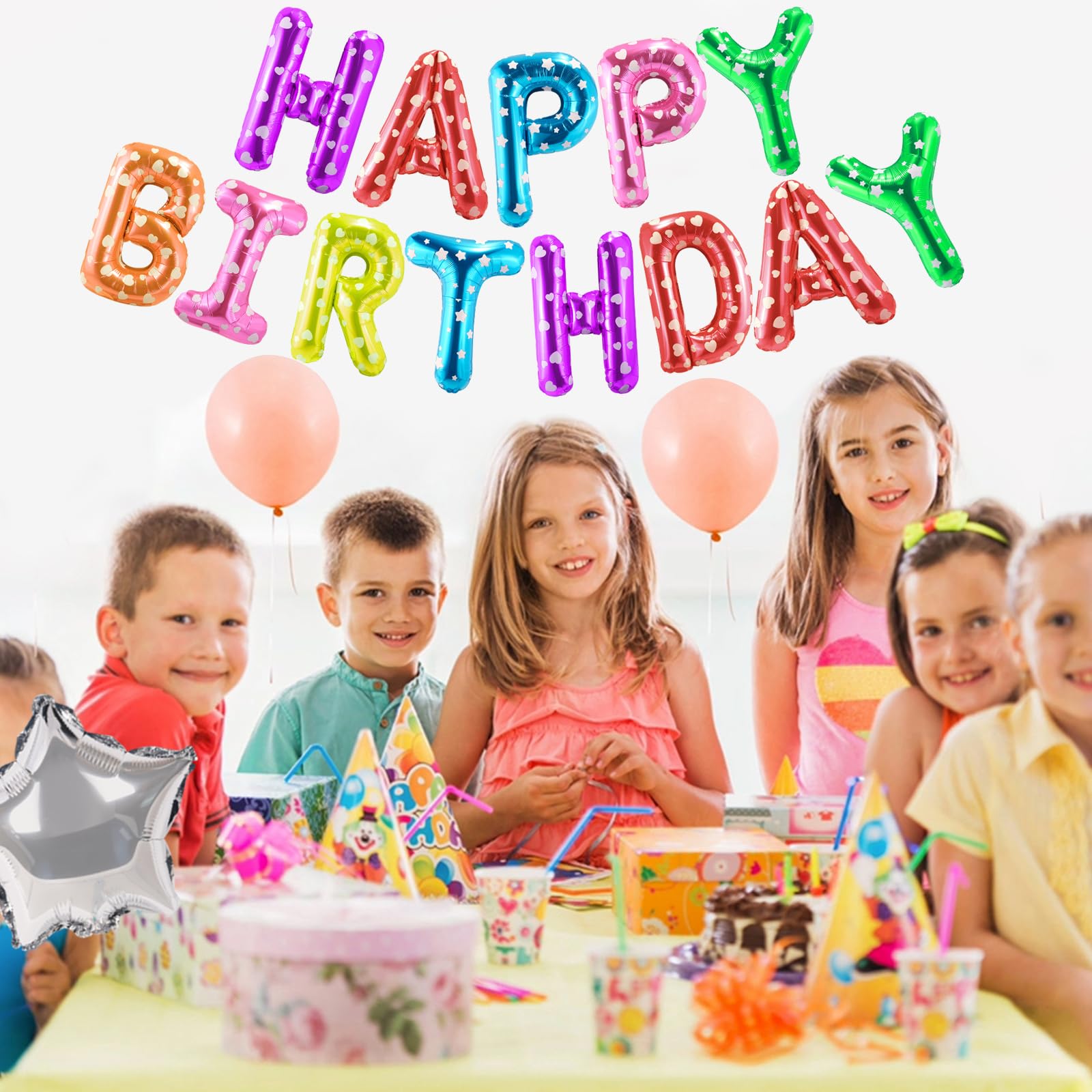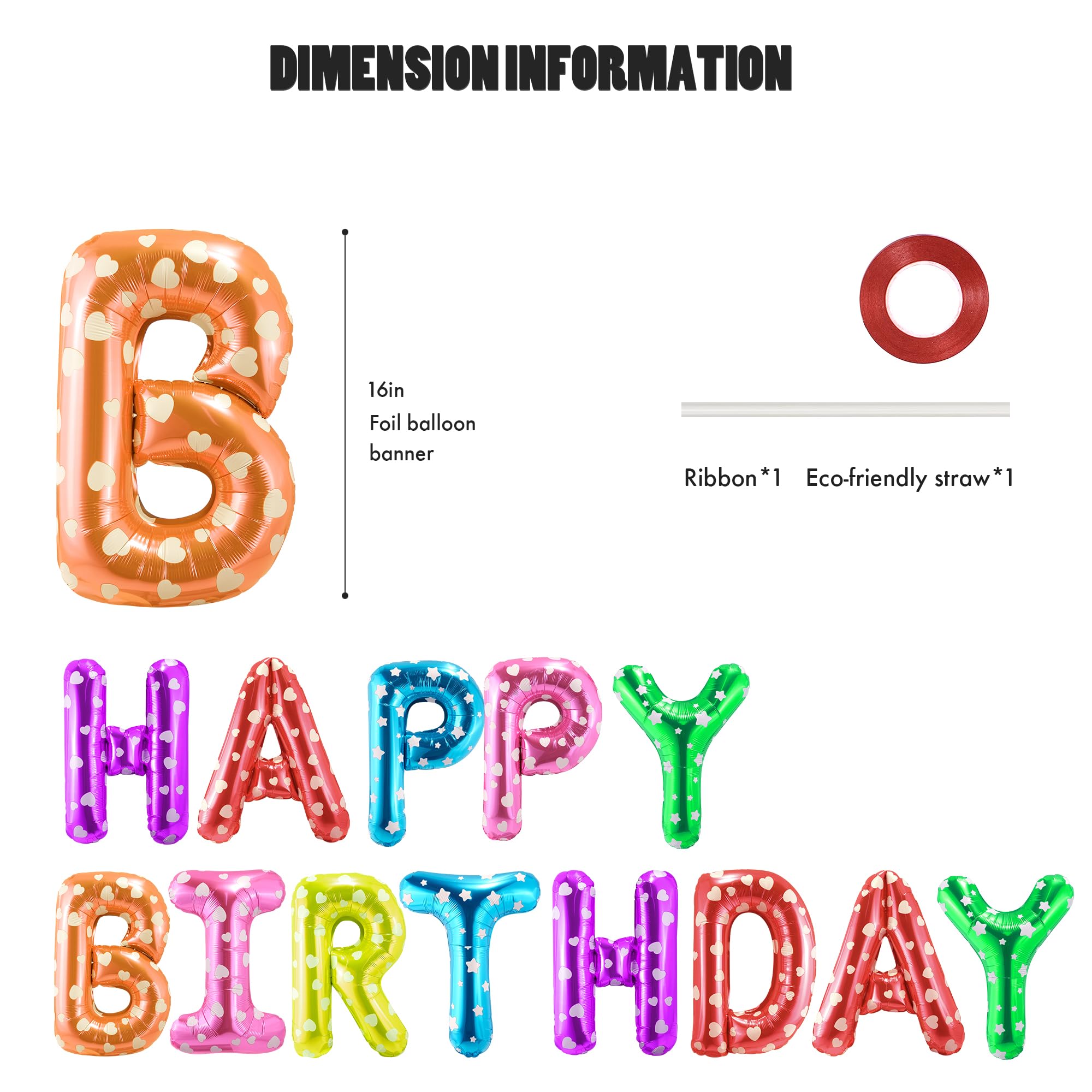 🎈VALUABLE PACK : 13 Pcs multi color "Happy Birthday" letter balloons with 2pcs straw and 1 pcs ribbon. Each letter balloon measurement about 16 Inch.