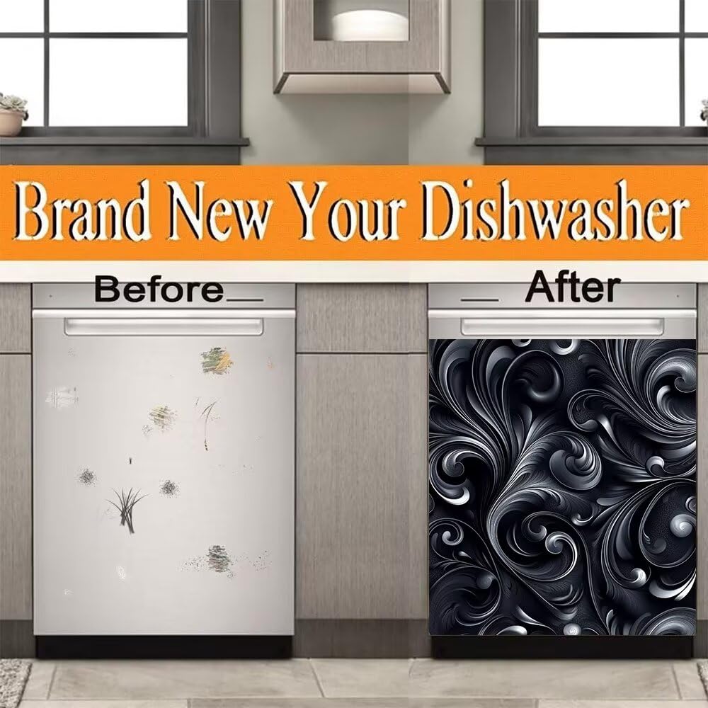 Just a few simple steps to make your kitchen different look. Our Kitchen Dishwasher Stickers allow you to easily transform your kitchen Magnetic Dishwasher Stickers Feature: Smudge, water and heat resistant Easy to clean and maintain Easy to install Renew your kitchen Application: Kitchen dishwashers, kitchen counters, cabinets, drawers, sink cabinets, desktops, walls, washing machines, dryers.Metal surface,plastic surfacetc,glass surface, smooth wooden urface,etc Attention: Before buying, you can measure the size of the dishwasher or washing machine and choose the appropriate size. Sticker is easy to modify, and you can also cut it after receiving the goods. Just ensure that your dishwasher is magnetic before ordering the dishwasher cover magnet