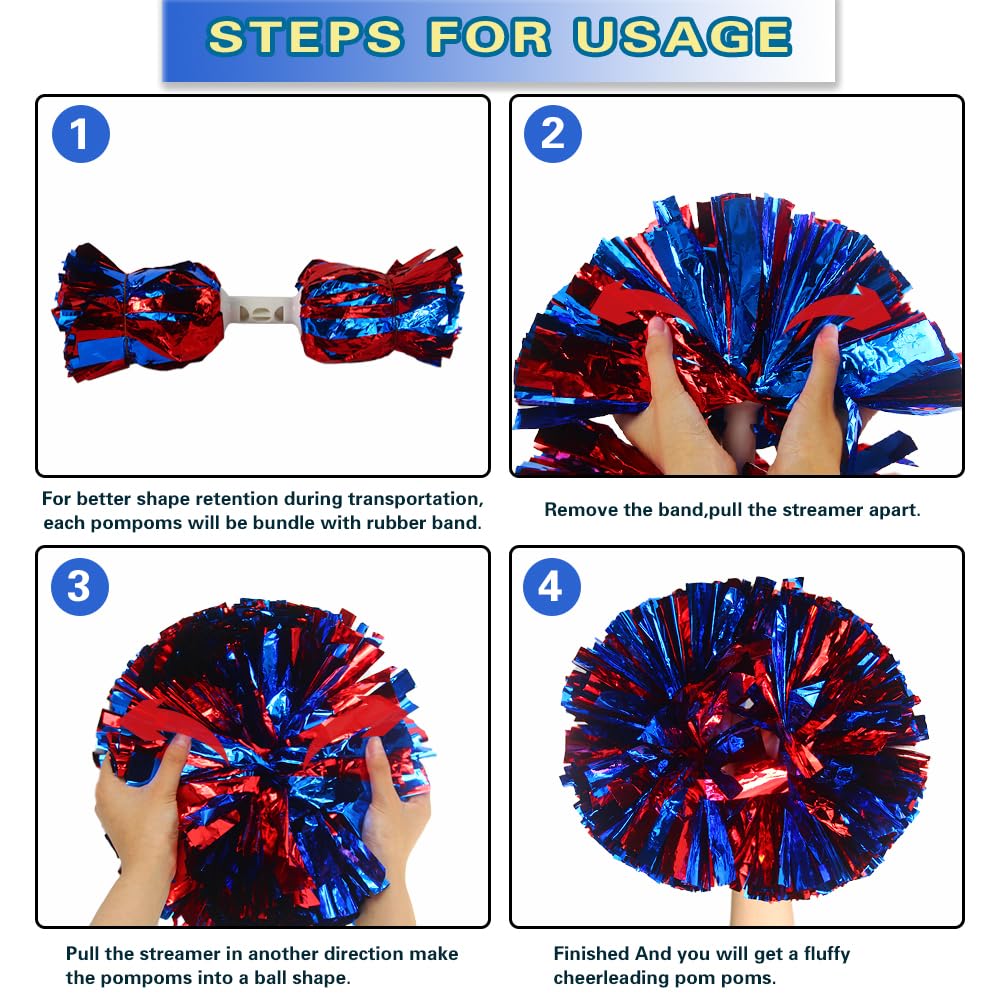 Package Included - You will receive 2 pieces (1 pair) 14 inch royal blue and red cheerleading pom poms in box. A great gift choice for your kids who love cheer. And there are many colors available to match your uniform or your team supplies.