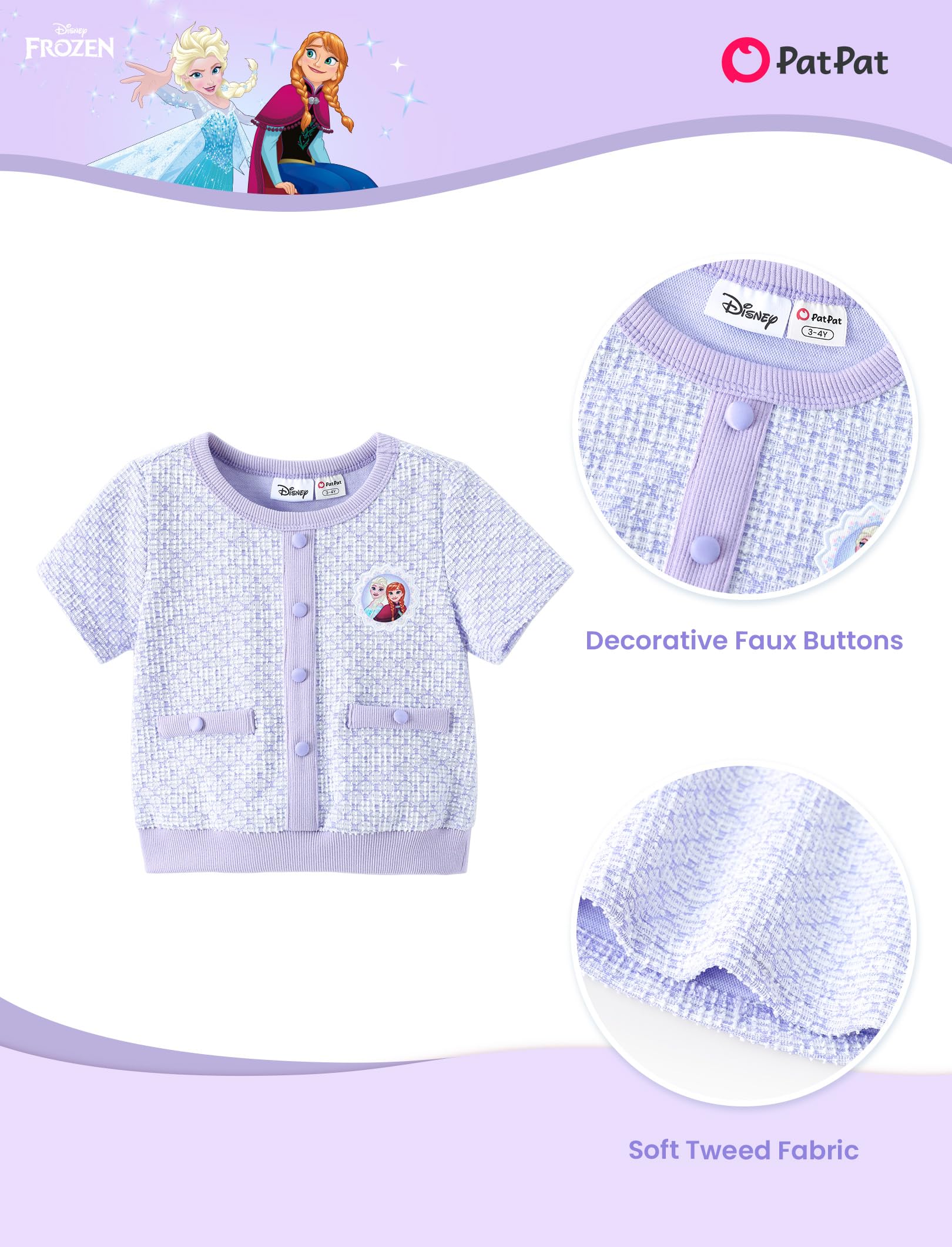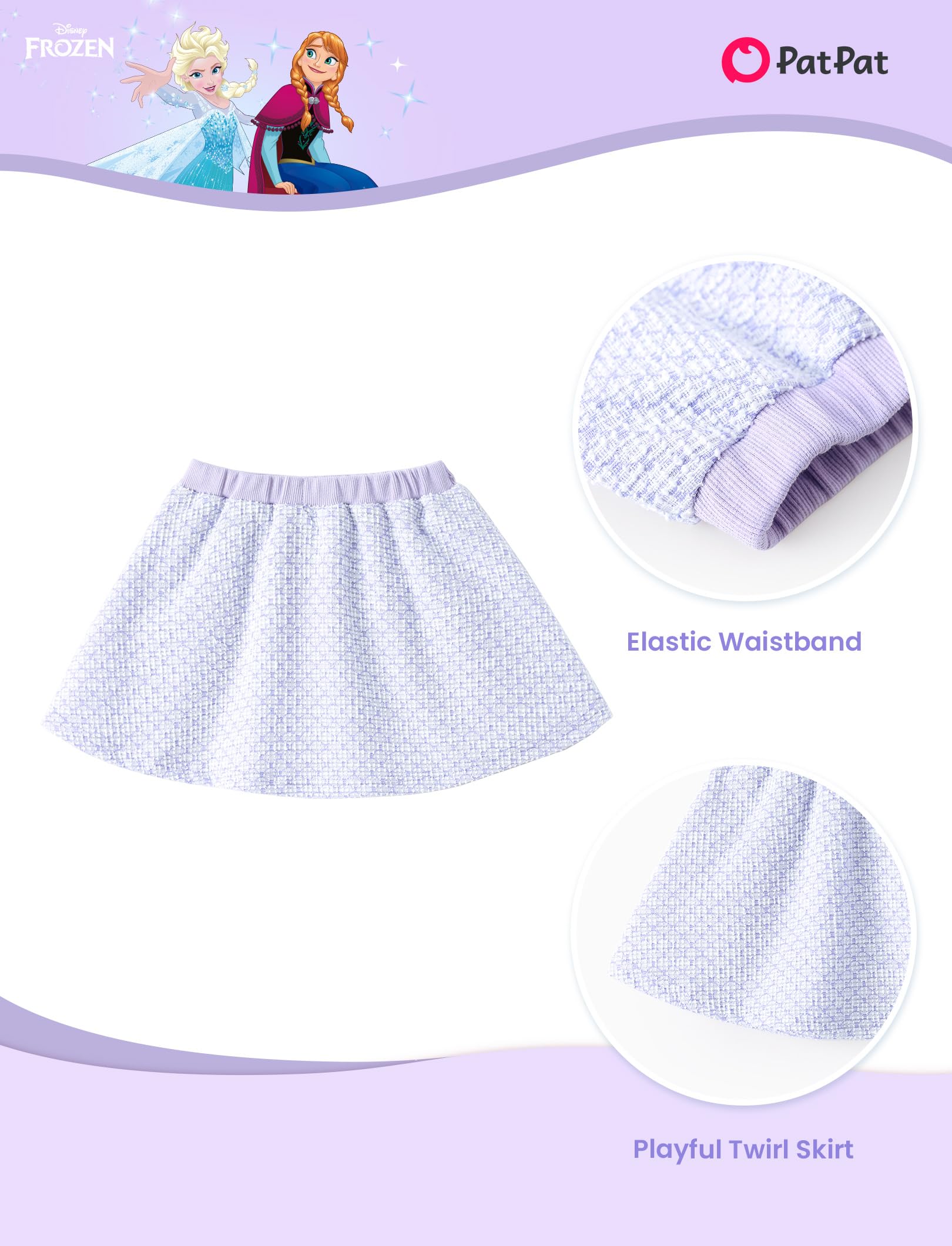 Elegant 2-Piece Design: This charming Disney dress for girls features a soft knit top in light lavender with an adorable Elsa and Anna graphic, paired with a flared, pleated skirt made from the same textured fabric. The breathable material ensures comfort for active toddlers, making it an ideal choice for any occasion, from everyday wear to Frozen birthday party decorations